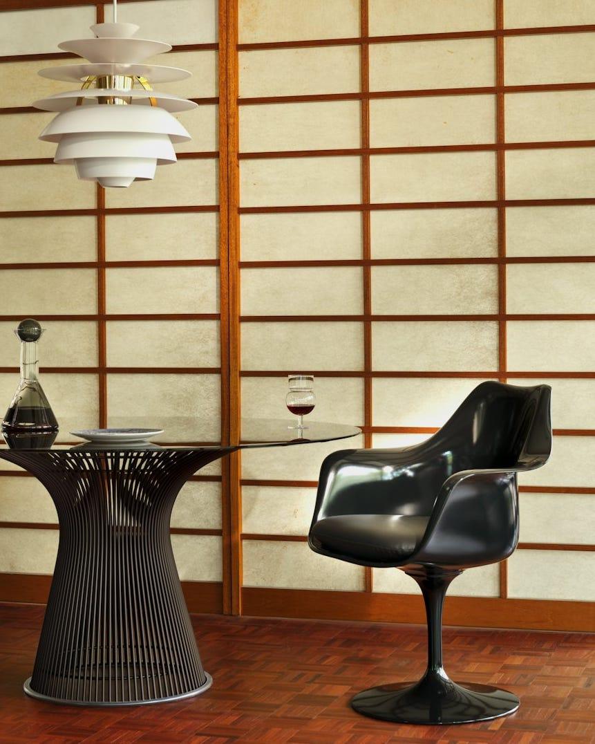 Коллекция Tulip стала его решением проблемы, Сааринен заменил четырехногие конструкции прошлого одним центральным постаментом, поддерживающим скульптурное сиденье, напоминающее одноименный цветок. Компания Knoll выпускает эти стулья с 1957 года.