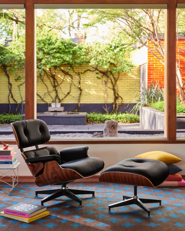 Знаменитое кресло для отдыха и пуфик были собственным взглядом четы Имз на роскошь. Они стремились создать максимально удобное кресло, такое, которое бы ощущалось как «хорошо разношенная перчатка бейсболиста».