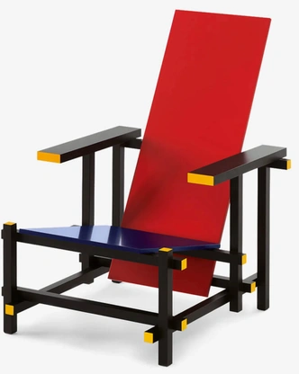 Даже просто взглянув на стул Геррита Ритвельда, становится очевидной его связь с художником Питом Мондрианом. Оба были членами группы «Де Стил», и геометрическое сиденье Риетвельда, выполненное в основных цветах — первоначально разработанное в 1918 году и раскрашенное в 1923 году — напоминает картины Мондриана.