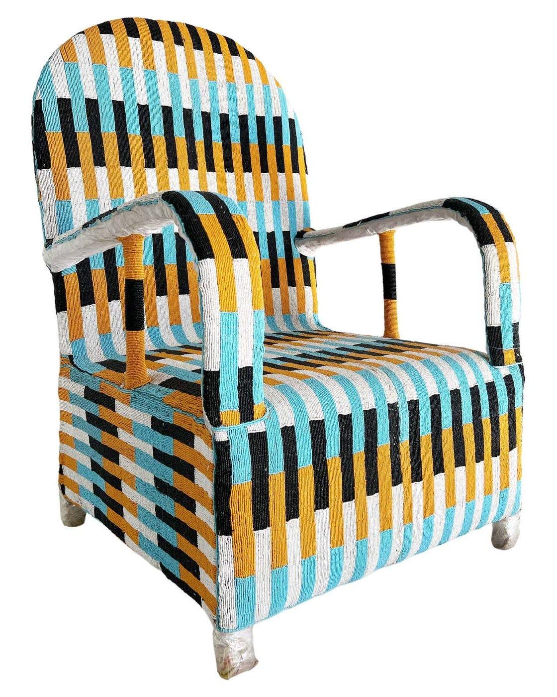 Эти кресла, изначально создавались вручную для членов королевских семей племен йоруба в Западной Африке. Мебель украшена узором, полностью созданным из бусин. Предназначенные для церемониальных целей кресла могут состоять из более чем 100 000 бусин, каждая из которых крепится вручную.