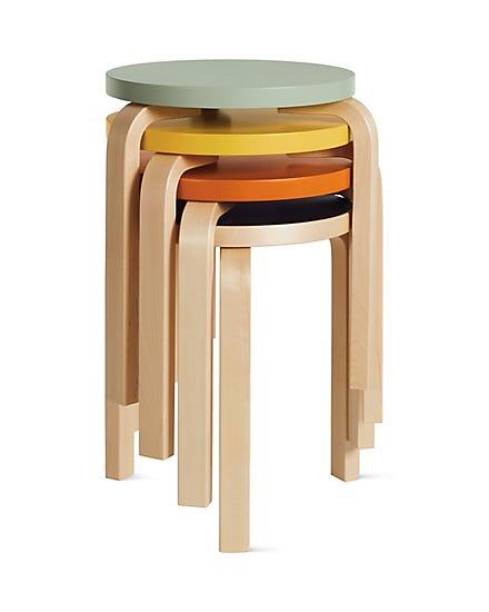 В 1930-х годах финский дизайнер Алвар Аалто (Alvar Aalto) начал экспериментировать с методами обработки березовой древесины паром, чтобы сделать ее гибкой. Самый удачный результат — этот простой, штабелируемый табурет на трех ножках, который Аалто производил под брендом Artek, основанный им вместе с женой Айной.