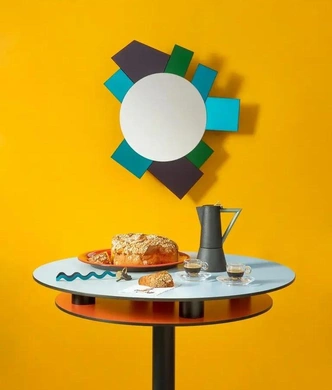 Винтажная кофеварка из коллекции Accademia Этторе Соттсасса и Маттео Туна для Lagostina. Стол Principles, дизайн OMA для UniFor. Зеркало Gli Specchi di Dionisio Этторе Соттсасса для Glas Italia