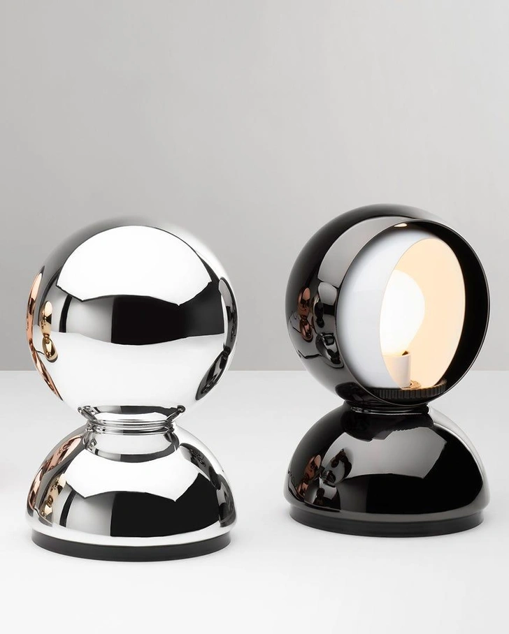 Эту лампу Вико Маджистретти нарисовал на билете в метро, . В светильнике Eclisse освещение легко регулировать благодаря трем вращающимся полусферам. Лауреат премии Compasso d'Oro, эта модель чередует прямой и рассеянный свет.