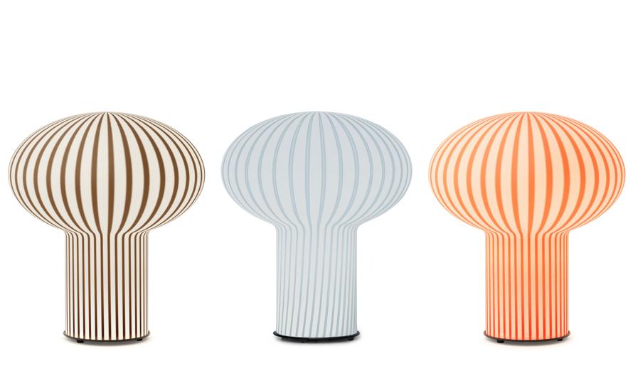 Лампа Zeffiro (также известная как Fungo) — микс чистых линий и функциональной простоты. Результат экспериментов Массимо Виньелли со стеклом, эта лампа была удостоена премии «Компас д'Оро» в 1956 году. Лампа изготовлена из цельного куска стекла. Бежевые и молочно-белые лепестки, мягко ниспадающие по корпусу, создают гармоничный, легкий объем.