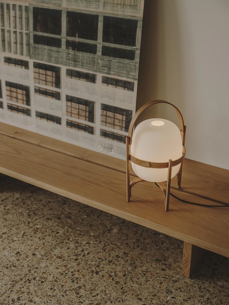 Лампа Cesta, разработанная Мигелем Милой в 1962 году, — универсальный светильник, подходящий для настольного и напольного использования. Дизайн отражает рациональный и взвешенный подход дизайнера, основанный на формальной ясности и функциональности. Конструкция выполнена из гнутой с помощью пара древесины вишни, которая окружает сферический опаловый рассеиватель с мягким светом.