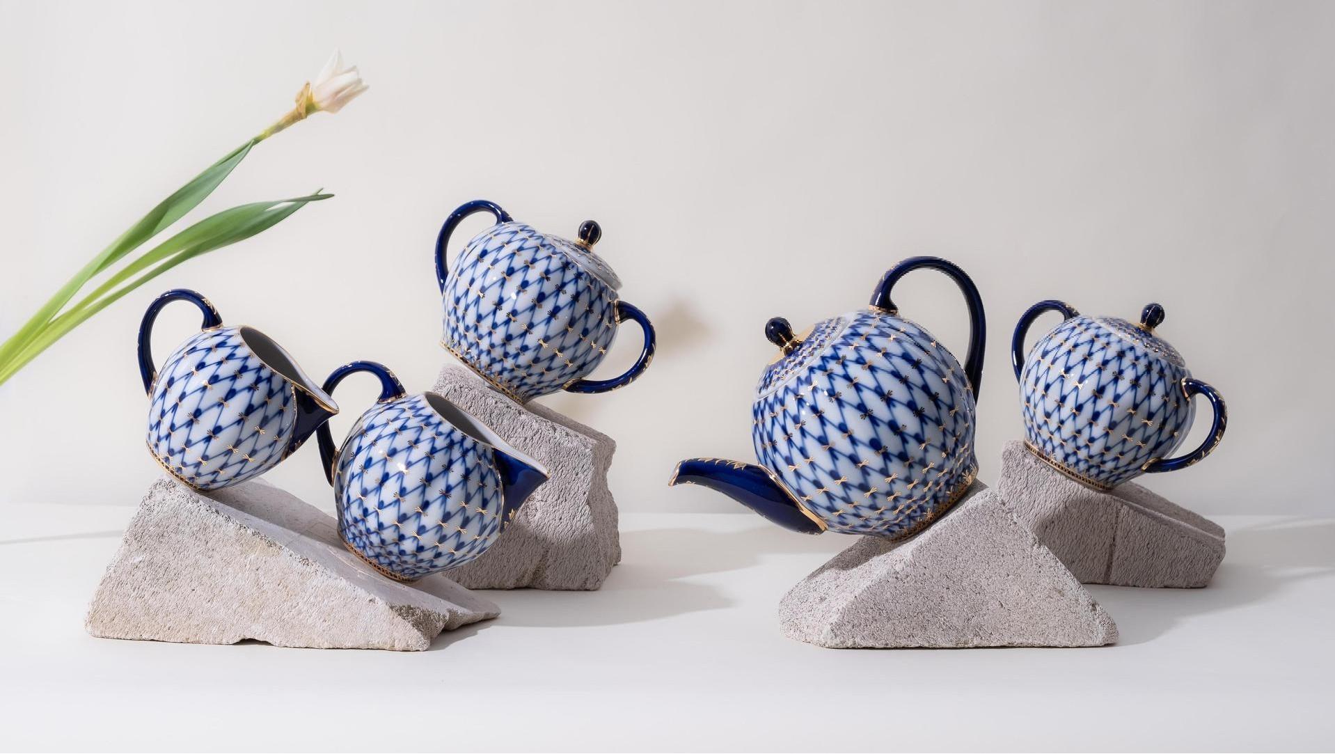 Особое место в наследии фабрики занимает легендарная коллекция «Кобальтовая сетка», созданная в 1940-х годах художницей Анной Яцкевич. Этот изысканный узор с тонкой синей сеткой с золотыми акцентами стал иконой советской эстетики, а сегодня узнаваем во всем мире как символ высокого художественного мастерства российского фарфора. Фабрика продолжает выпускать классические и современные коллекции, оставаясь эталоном качества, утонченного дизайна и национального наследия.