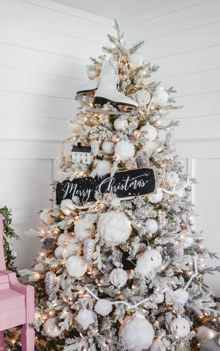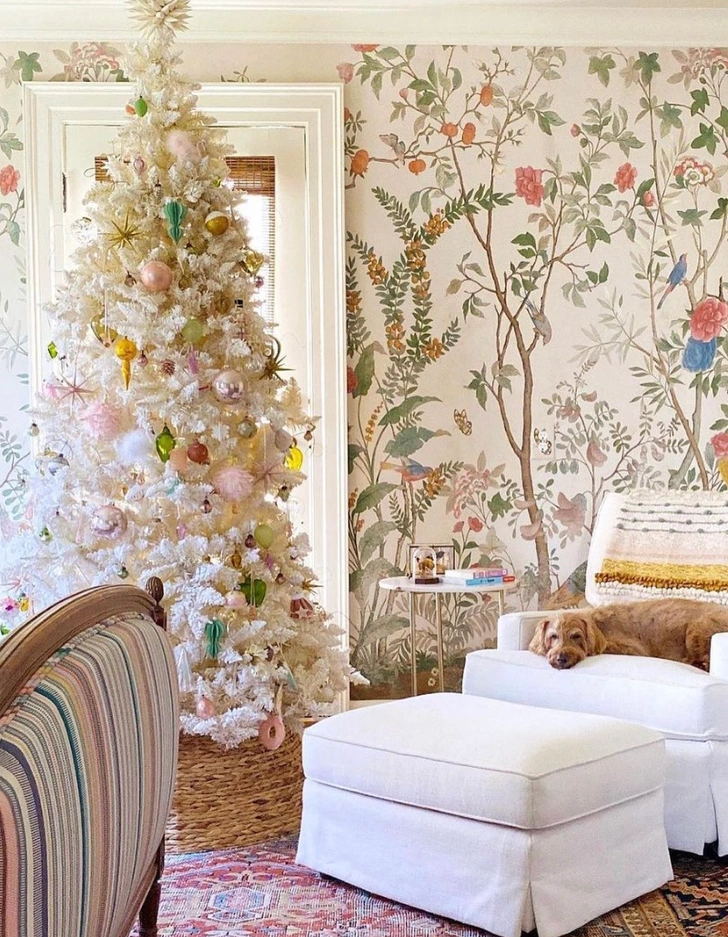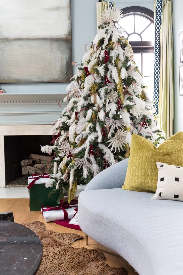 Откажитесь от традиционной зелени в пользу искусственной ели белого, серебристого или сливочного оттенка. Украсьте ее шарами, бантами и фигурками в пастельной палитре: пудрово-розовом, мятном, лавандовом, ванильном. Этот вариант идеально впишется в скандинавский стиль интерьера.