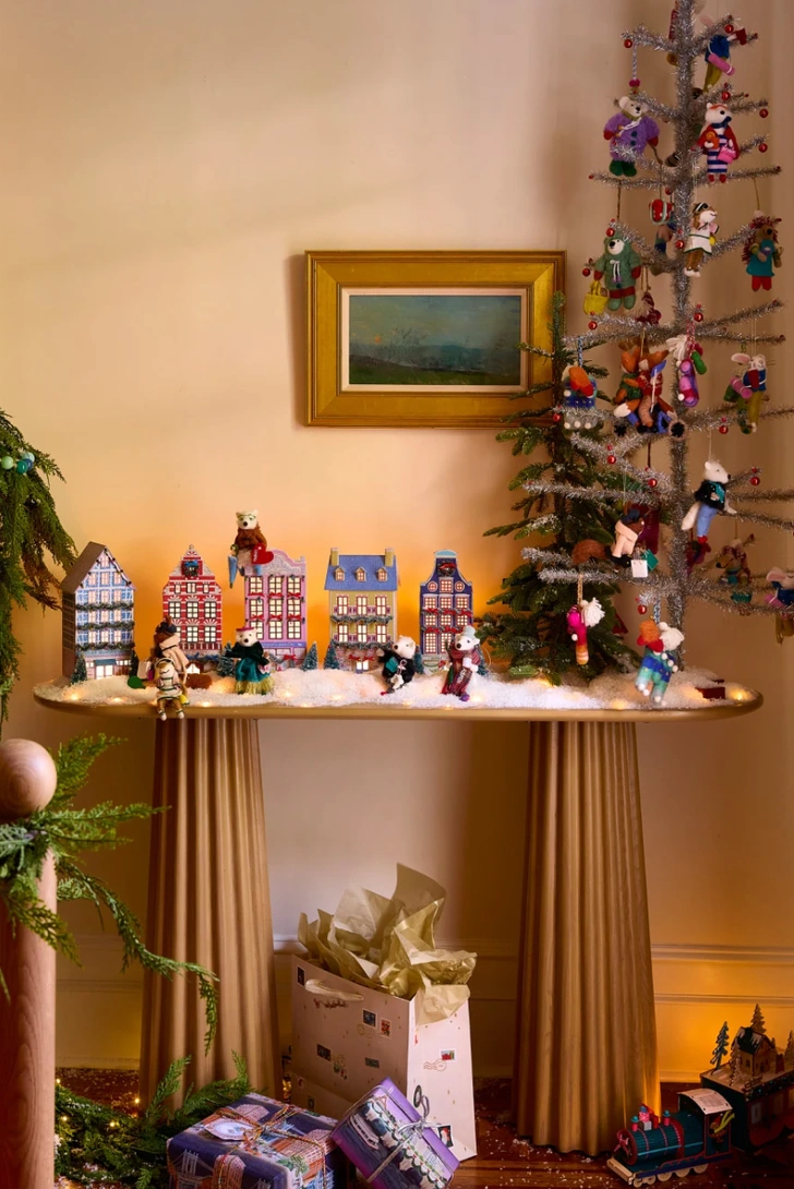Выберите один тип фигурок — например, фарфоровые домики, керамические птицы или вязаные гномы — и полностью оформите ими дерево. Такая елка выглядит максимально целостно и напоминает арт-объект в музее.