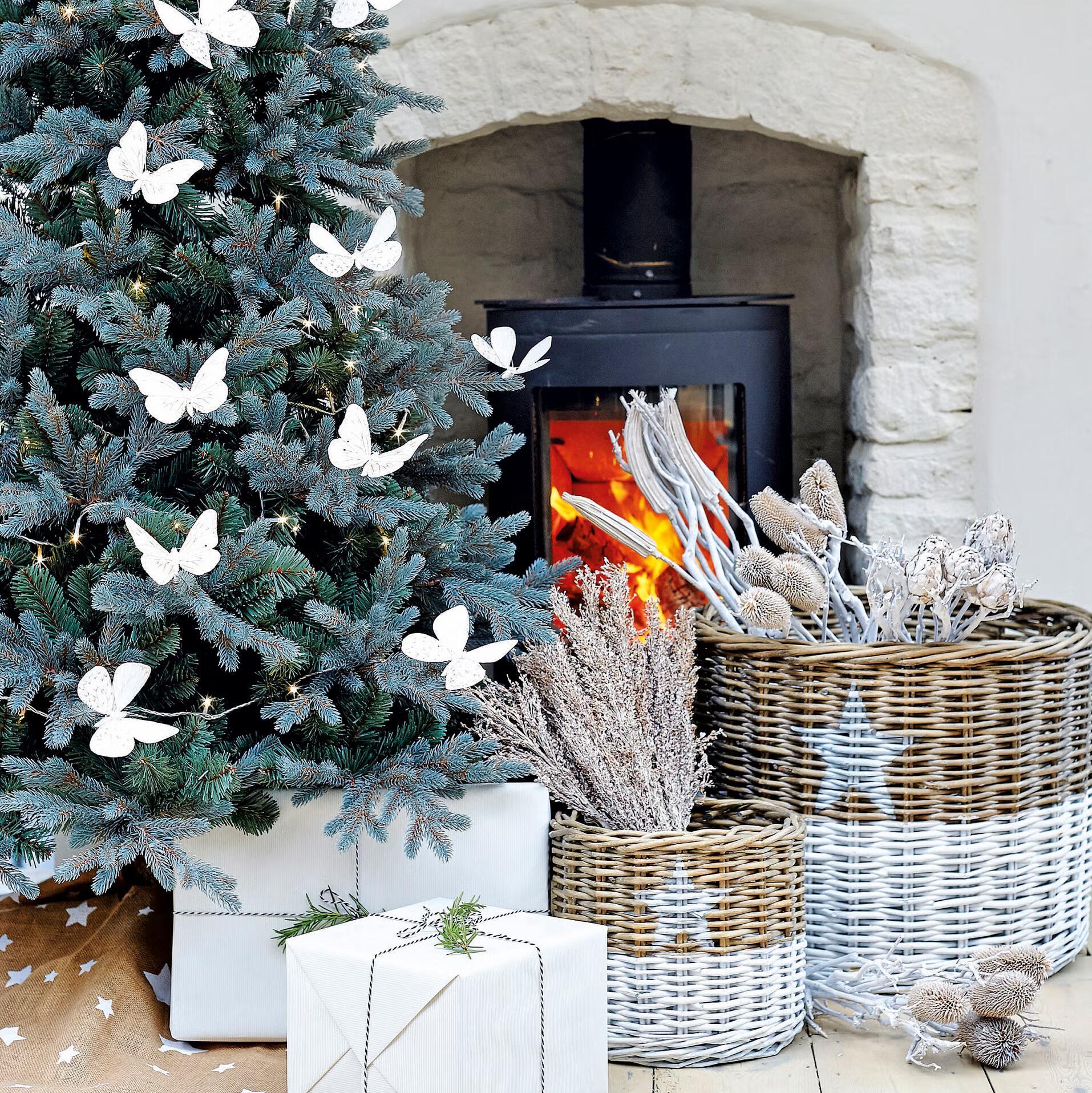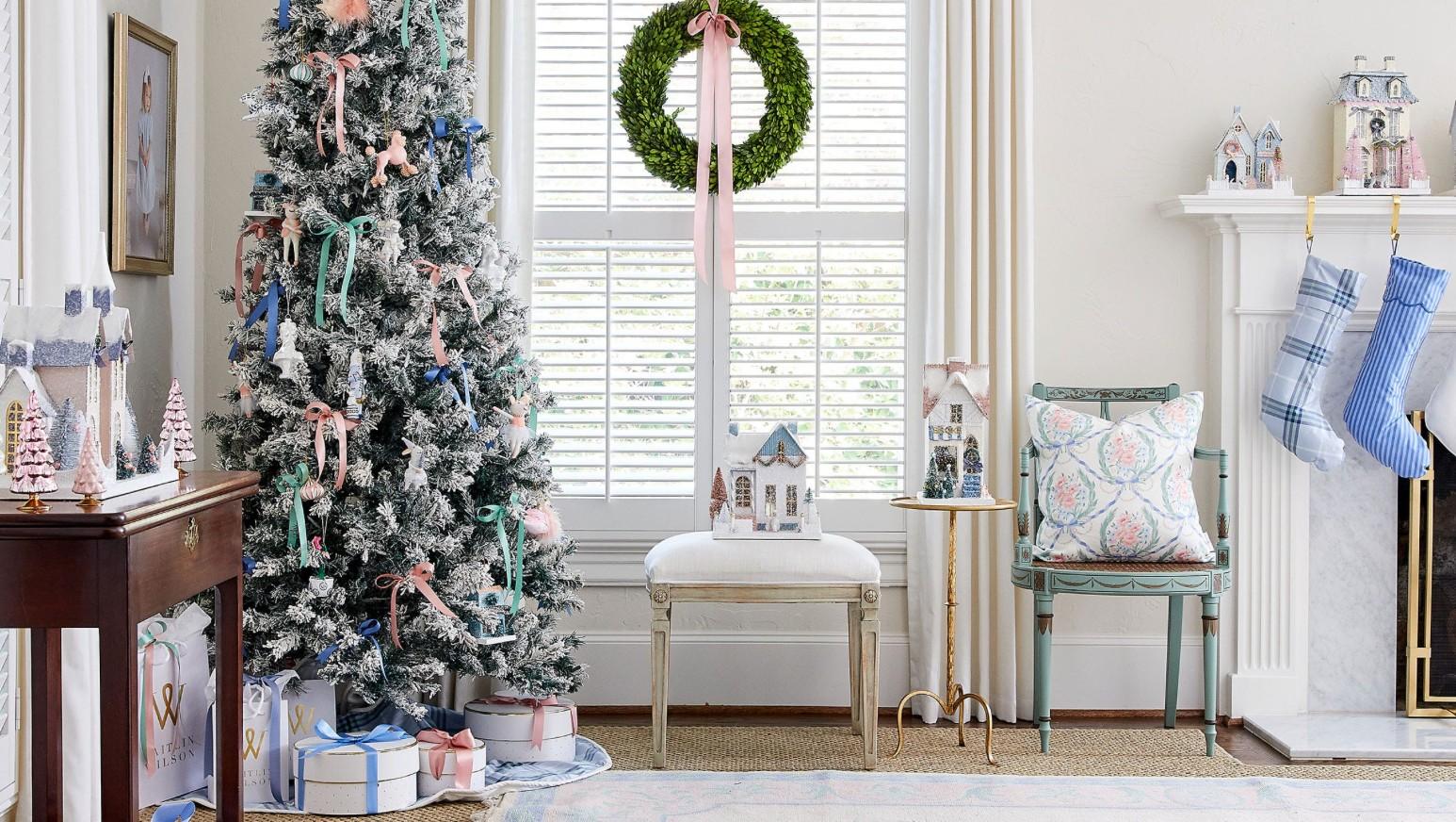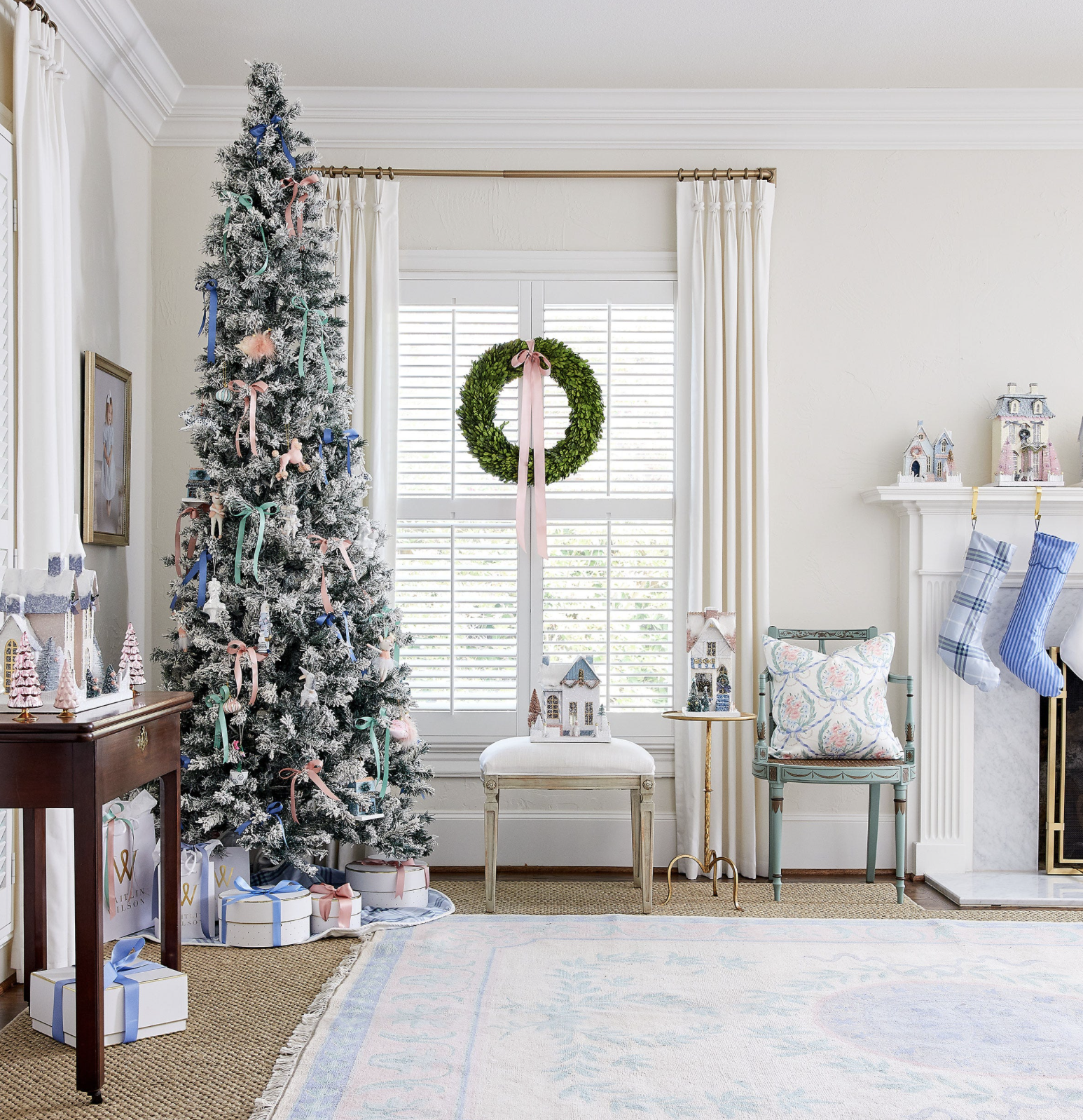 Можно создать уютную домашнюю атмосферу, повязав полосы ткани с «шотландским» узором на манер гирлянды, елочные шары дополняют домики и шишки, а макушку дерева венчает мягкий бант побольше. Любители рукоделия могут сделать украшения из шерстяных цветных помпонов. Розовые, мятные, голубые ленты также отлично работают украшением елки — а еще их можно использовать для упаковки новогодних подарков!