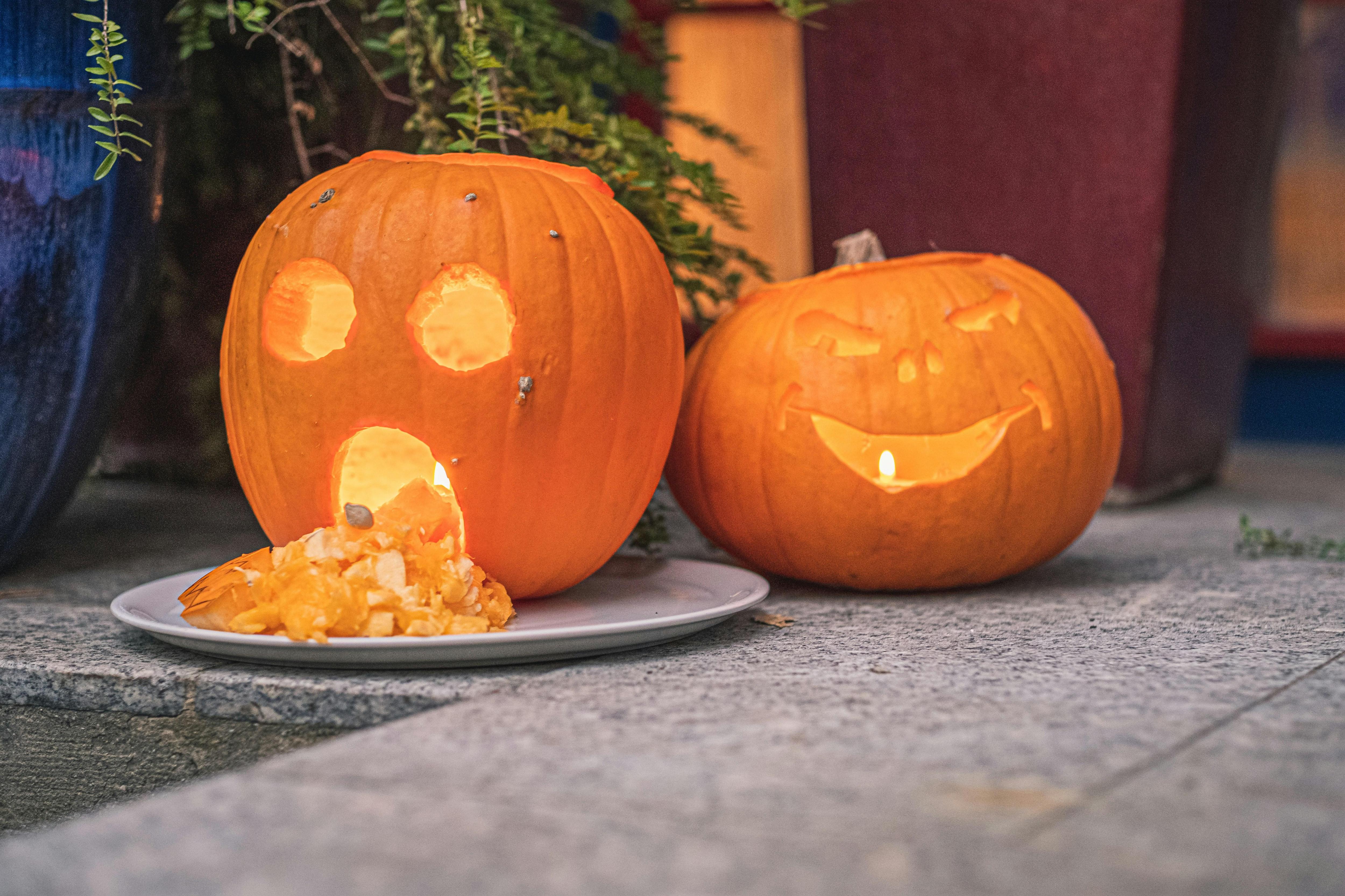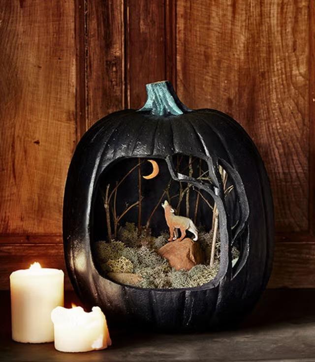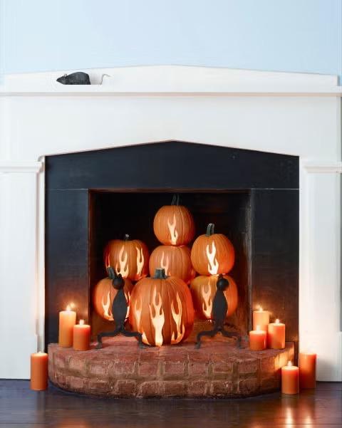 Процесс требует определенного планирования, поэтому начните с подготовки рабочего места для вырезания тыквы, выложите ножи и подложите на стол слой газеты или непромокаемую салфетку, чтобы не испачкаться. Традиционно сначала вырезают отверстие наверху тыквы и удаляют мякоть и семена, пока не получится полая емкость, готовая к вырезанию.