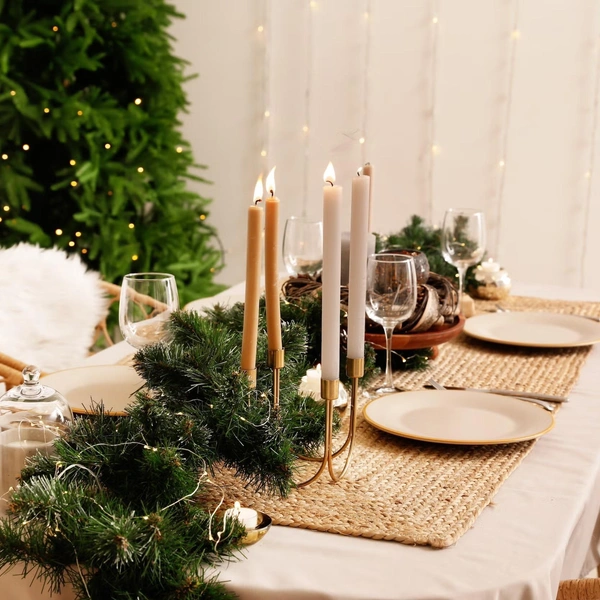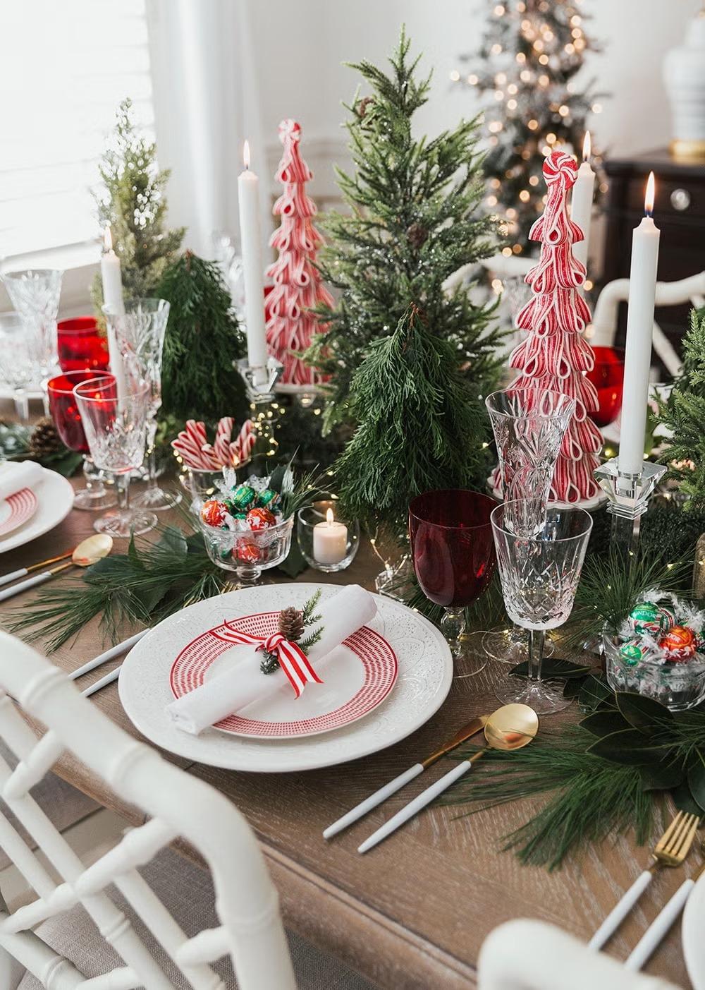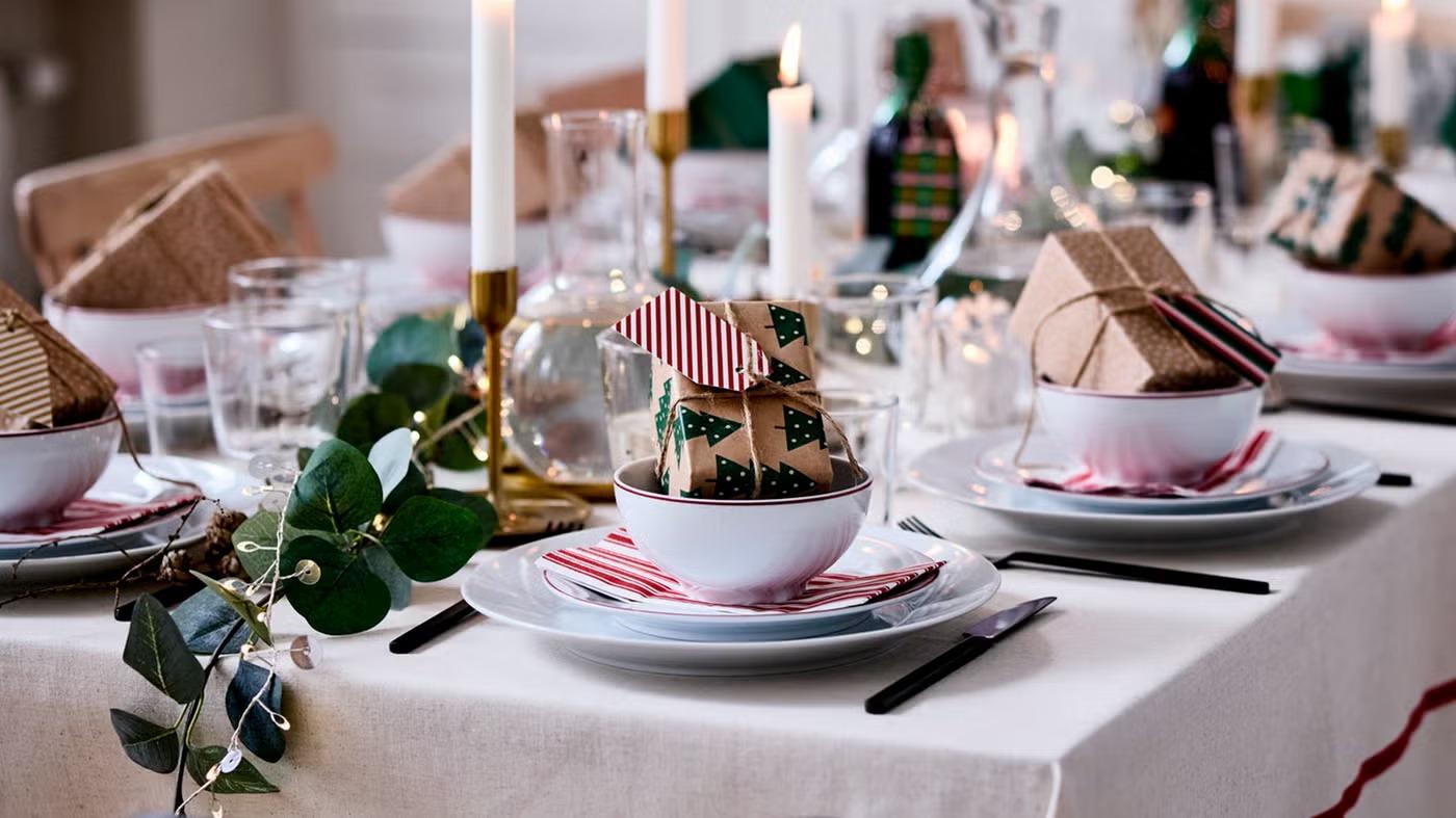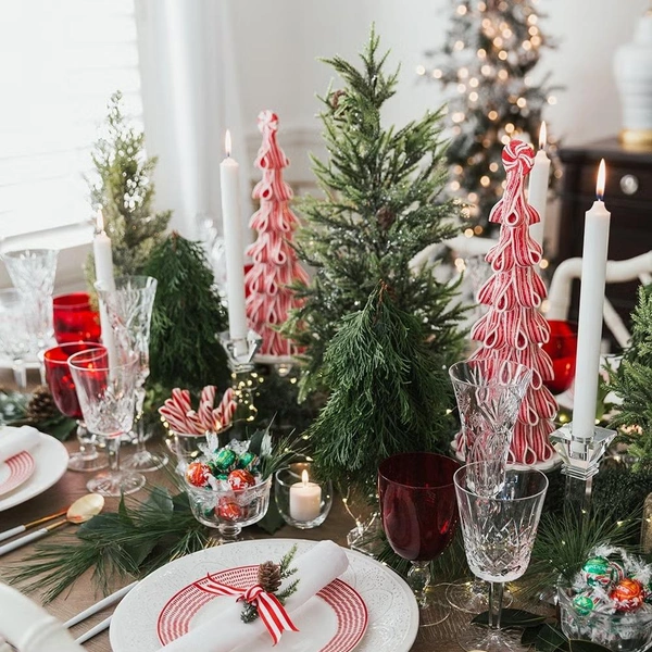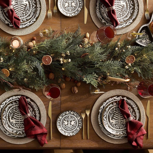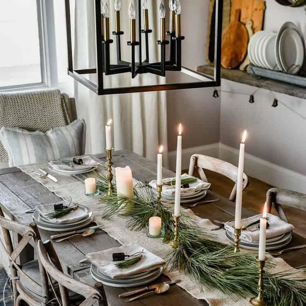 Когда дело доходит до праздничного ужина, украшение новогоднего стола почти так же важны, как и поданные блюда. На деле для сервировки и декора не нужны грандиозные композиции, нужное настроение можно создать с помощью нескольких элементов, размешенных в центре стола и рядом с тарелками.