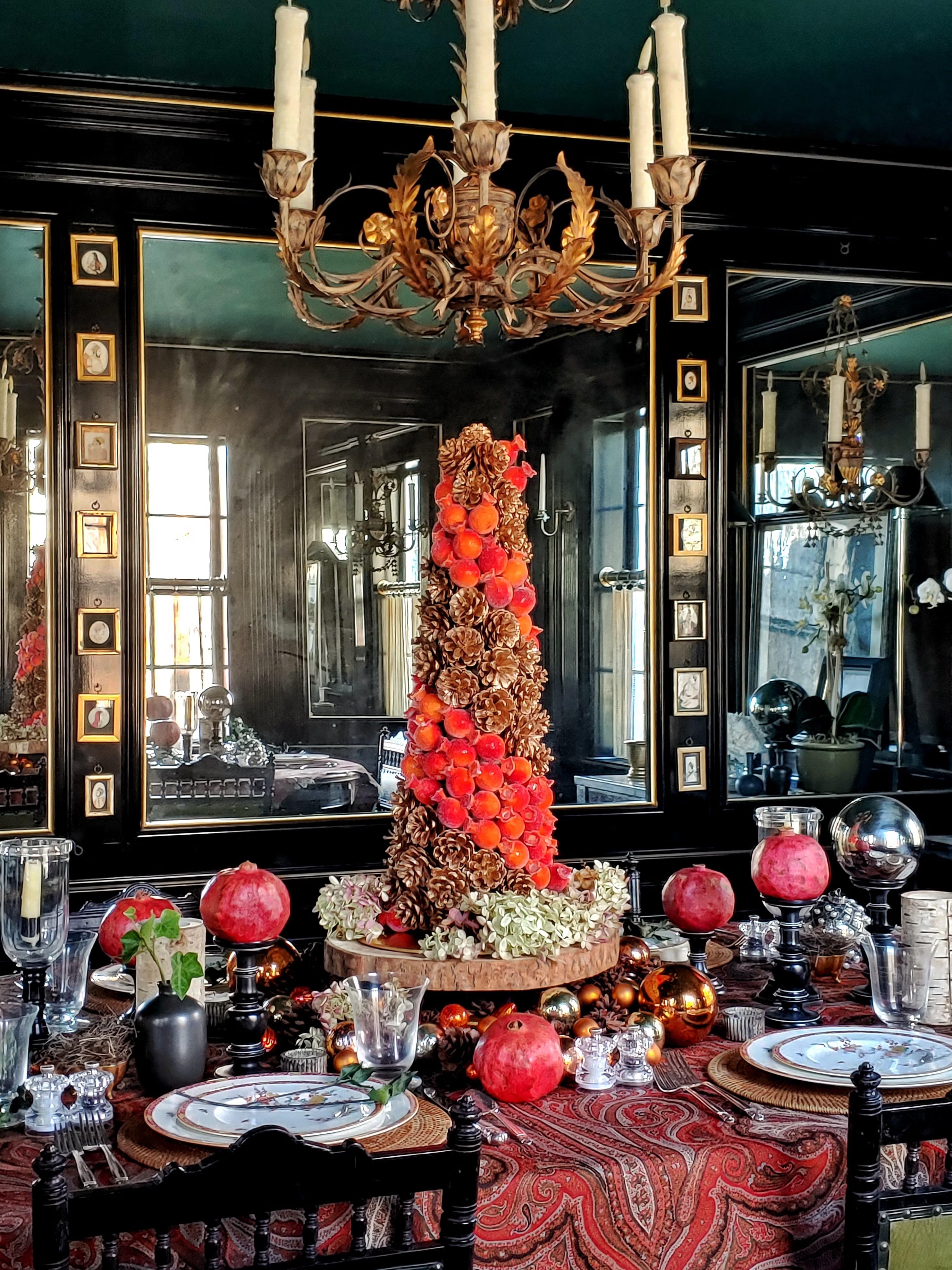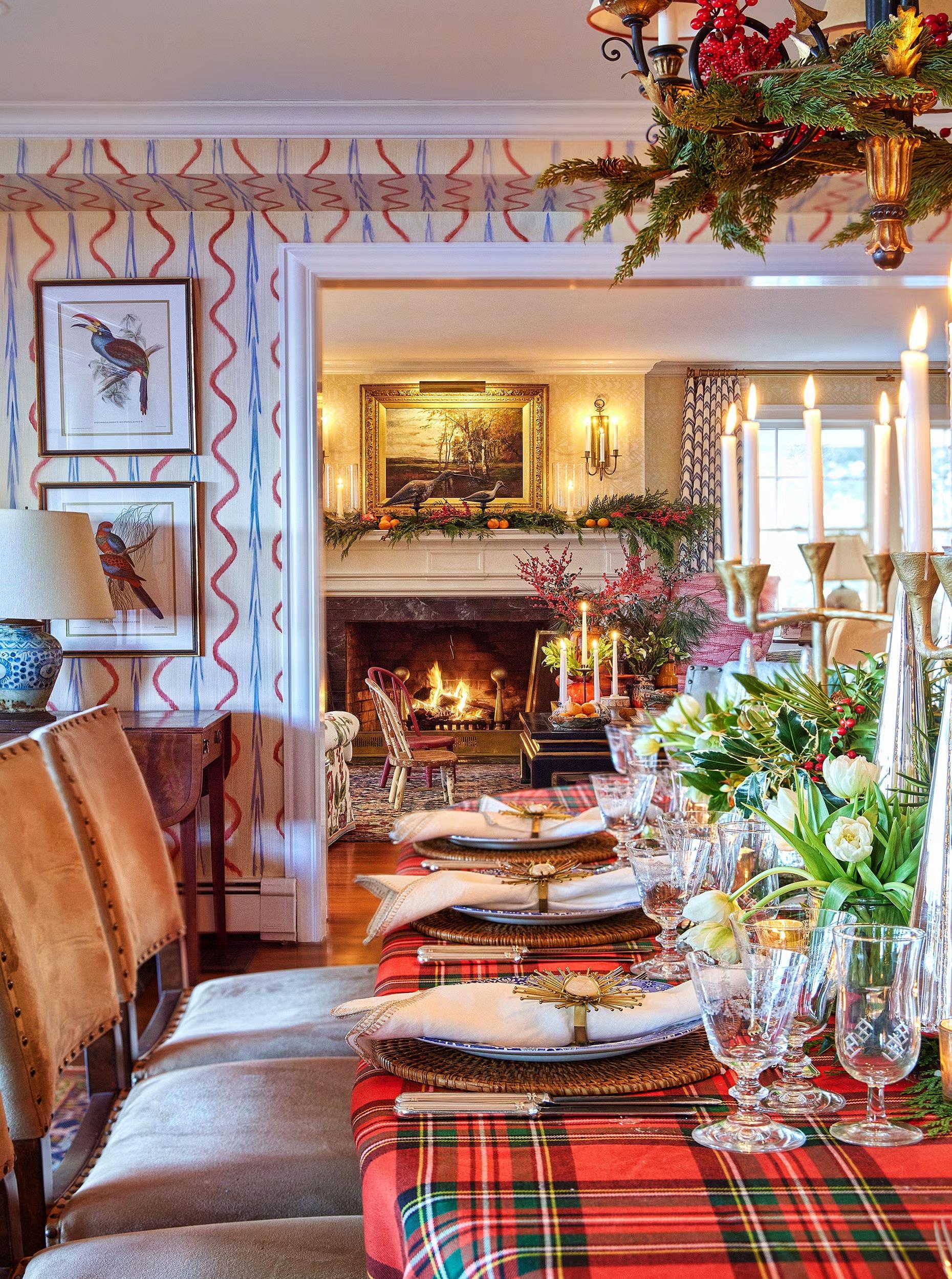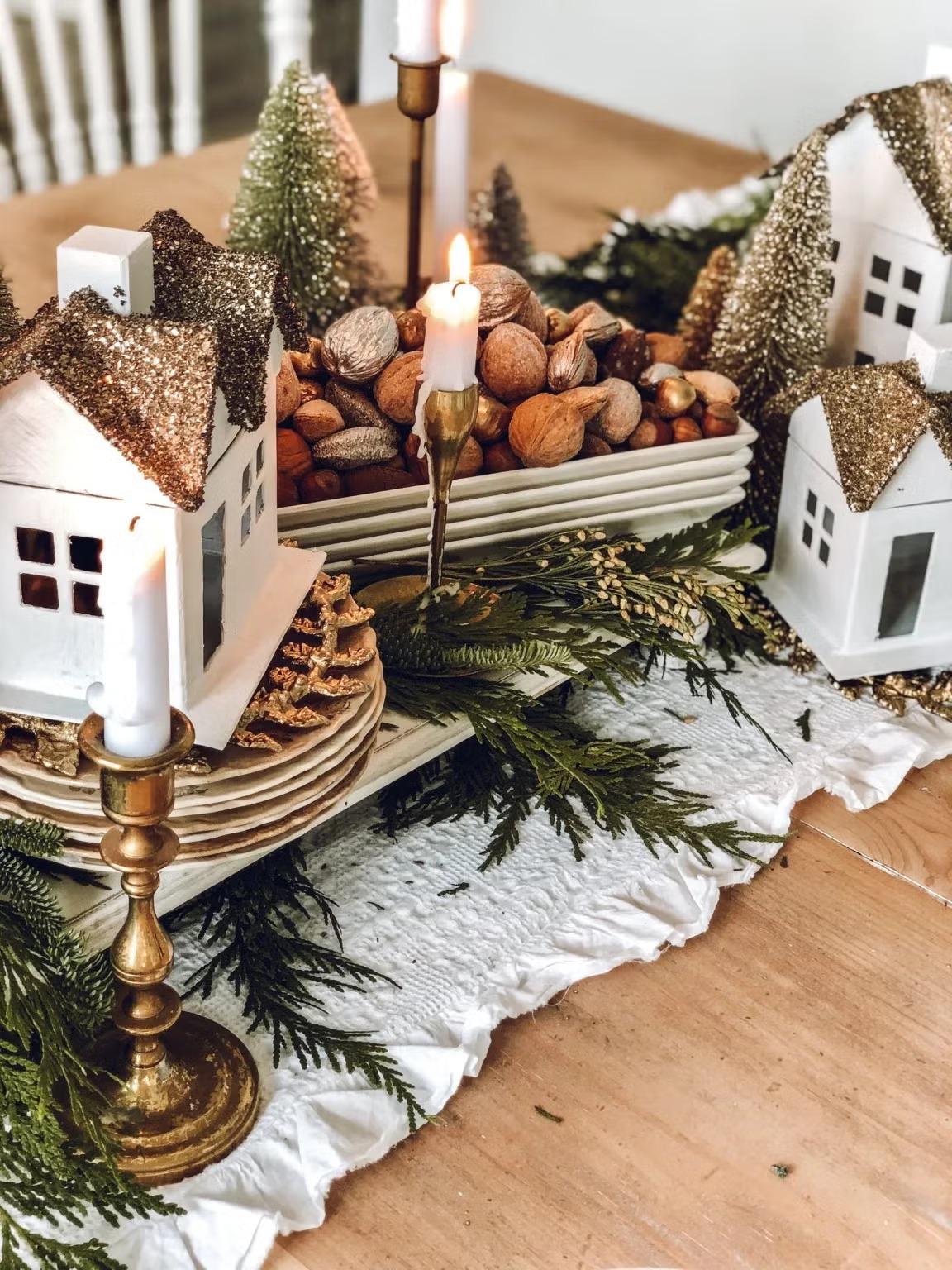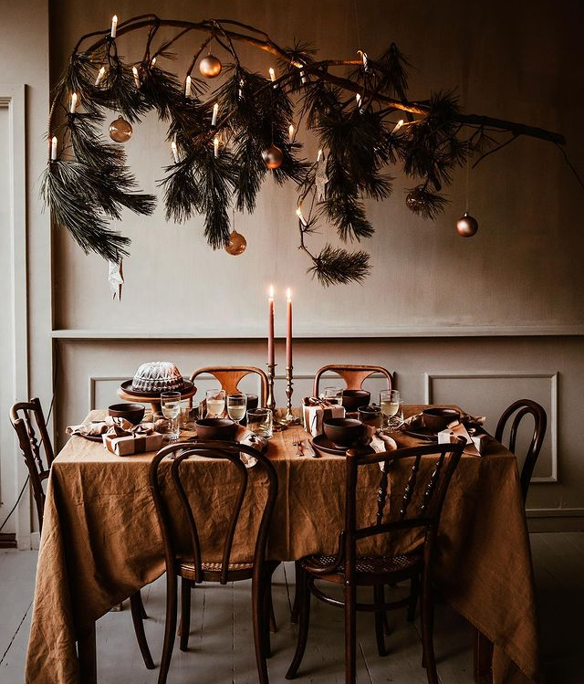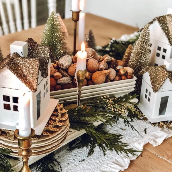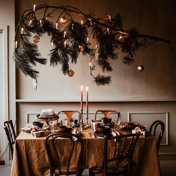 Чтобы добиться эффекта, как у профессиональных декораторов, используйте принцип многослойности. Основа — это скатерть, затем используйте салфетки под тарелками, разложите по столу гирлянды или ленты, блюда с шишками, фруктами или шариками. Центральные композиции, вазы и ветки хвои выбирайте невысокими, чтобы не мешать разговорам за столом, а праздничные хлопушки можно разложить рядом с каждым местом, тобы разрядить обстановку. Все это способствует более комфортному приему гостей.