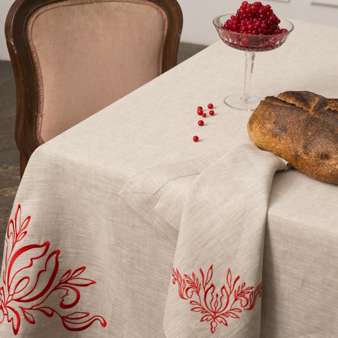 Коллекция «Усадьба» переосмысливает эстетические коды, характерные для русской интеллигенции дореволюционного периода, и переносит их в наше время. В столовом текстиле из льна с вышивкой дизайнеры бренда «Ленский» сохранили традиции и отразили культурную идентичность.