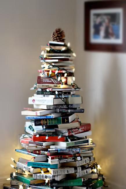 Если у вас нет елки, но есть большая домашняя библиотека, то теперь у вас есть елка. Не забудьте только украсить ее гирляндами.