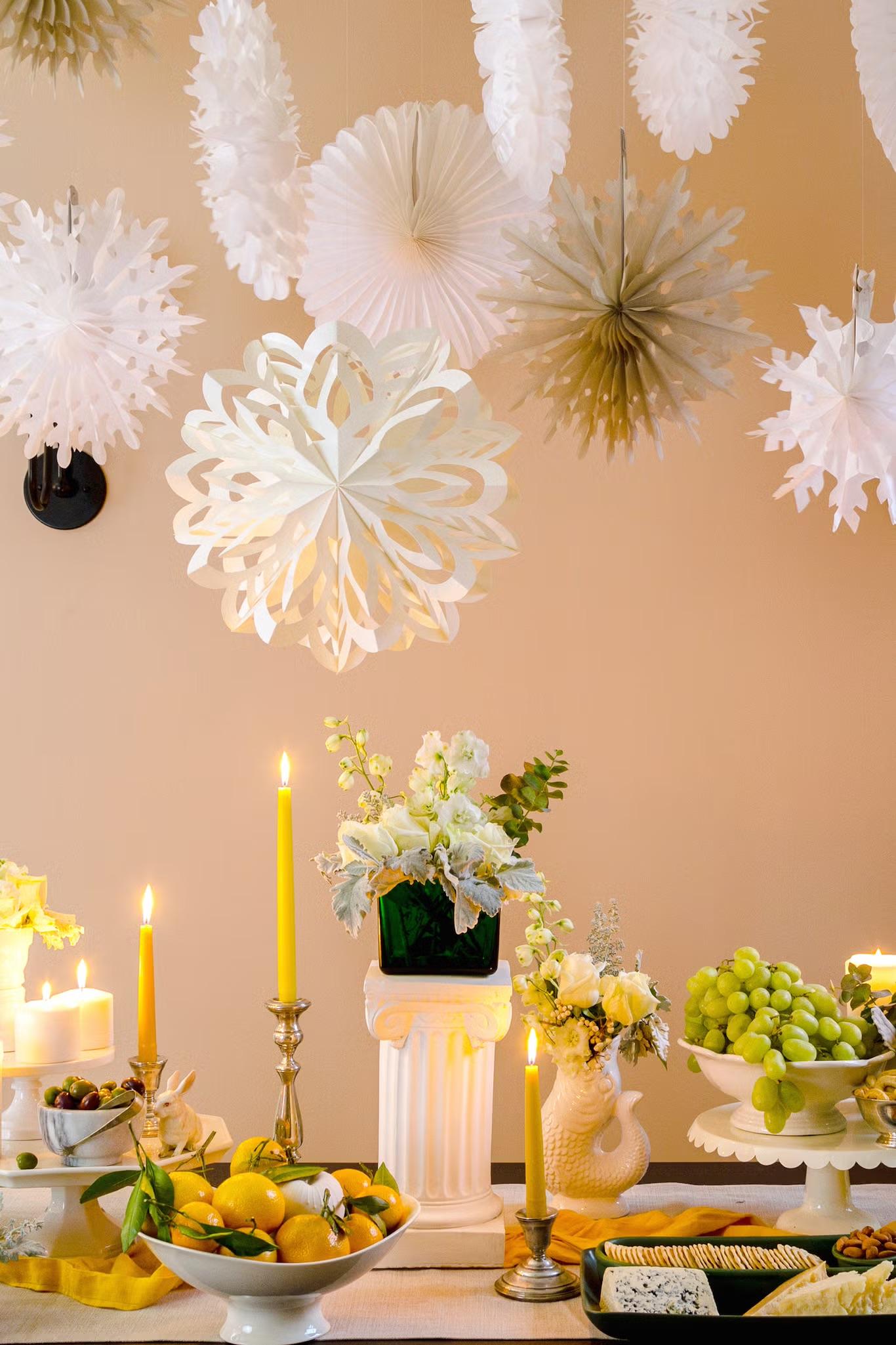 Как вам идея пойти против мейнстримного декора? Вокруг снежинки и сплошной красно-зеленый, а у вас — грибочки и спокойная землистая палитра. Даже если еще не успели соскучиться по осени, эти идея точно удивит ваших гостей.