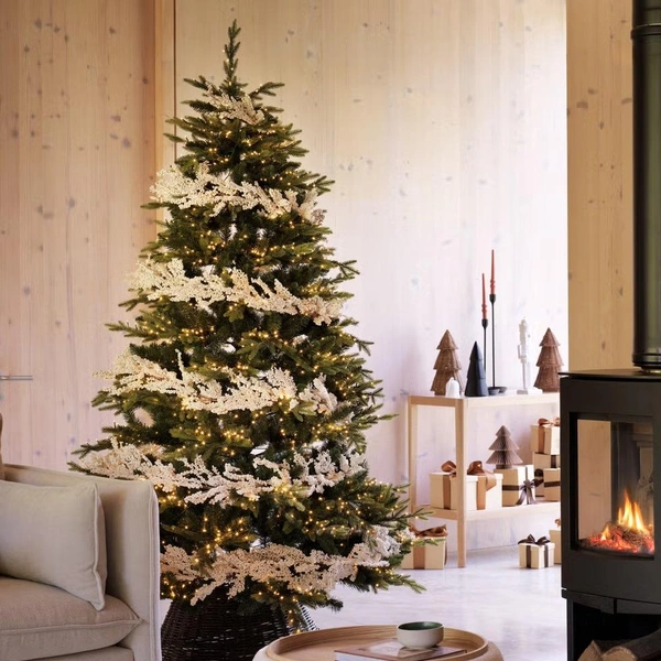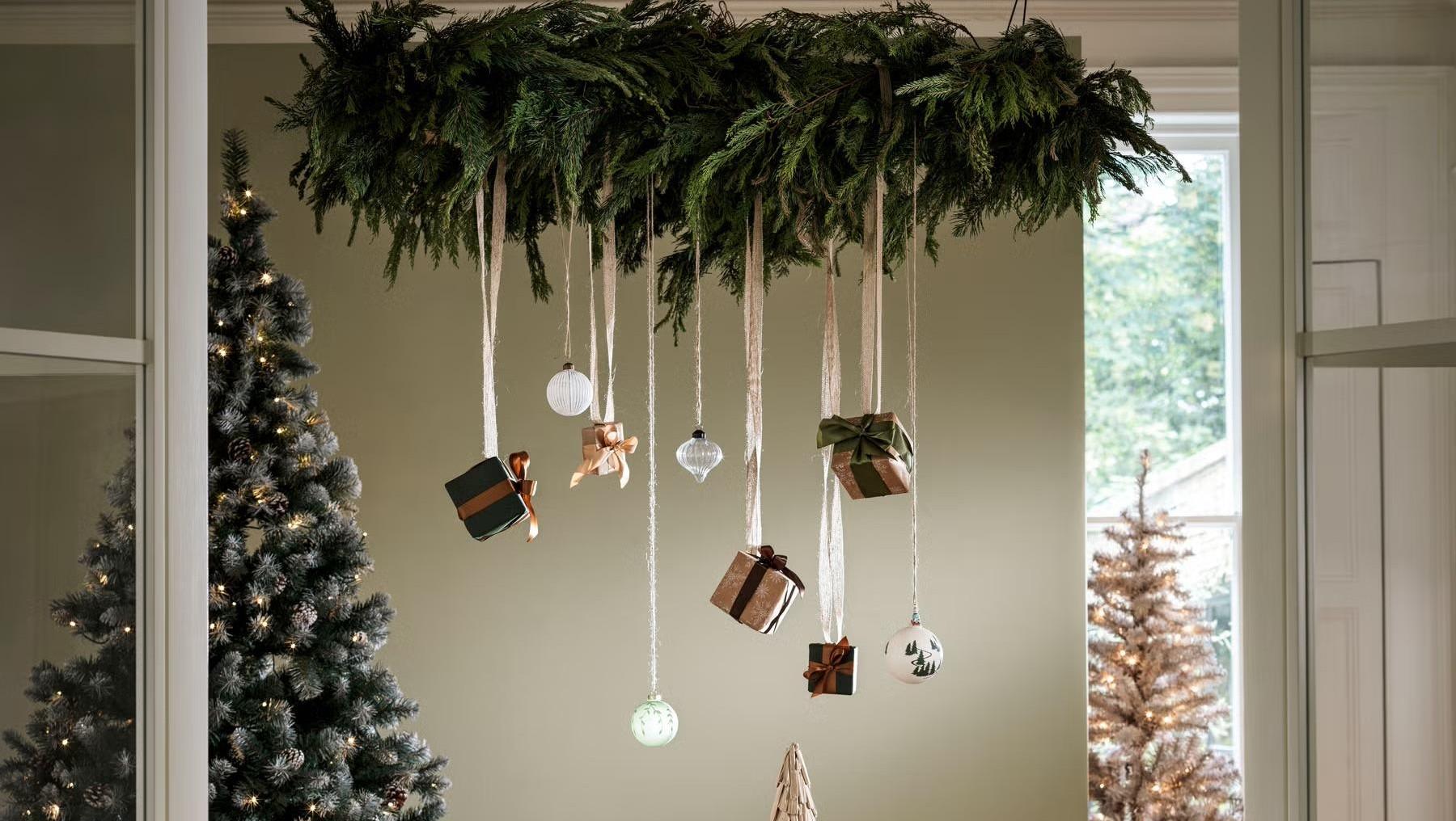 Кто сказал, что гирлянда должна быть зеленой и пышной — если вам такое не нравится, можно придумать что-то еще. Вот, например, такие бусы смотрятся лаконично и в то же время празднично.