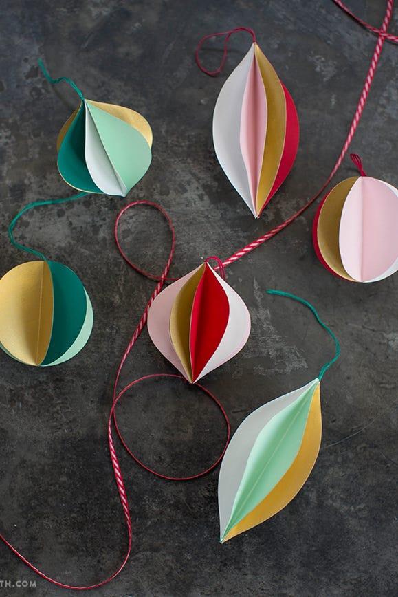 Для этих новогодних украшений в ретро-стилетпонадобятся только цветная бумага, нить и клей. Но вашей елке они придадут огромное очарование!