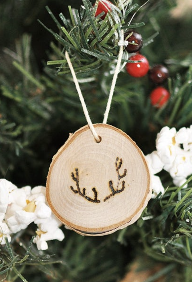 Возьмите небольшие кусочки дерева и выжигательный аппарат. Авторы этого украшения создали симпатичные оленьи рога, но вы можете придумать собственный узор!