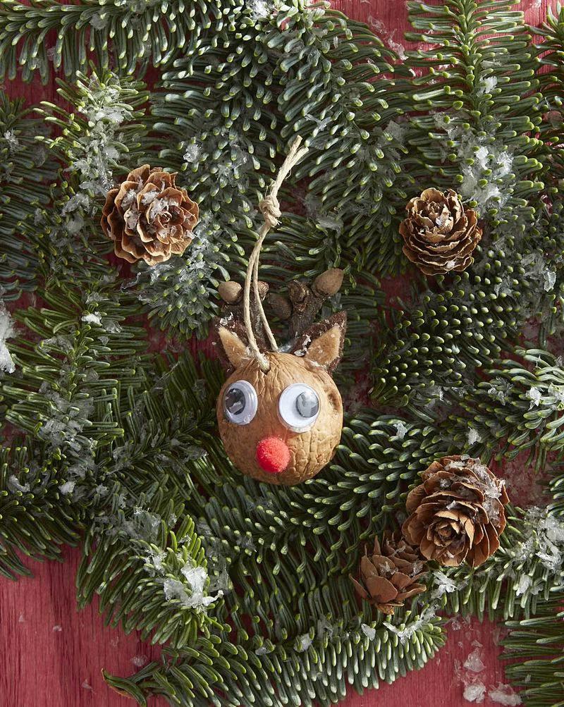 Классика самодельных новогодних украшений — сосновые шишки. Их можно дополнить бантом, а можно покрасить в белый или золотой, или украсить блестками.