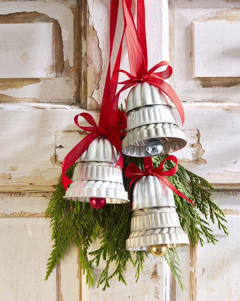 Все, что вам нужно для этих украшений, — несколько колокольчиков, лента и клеевой пистолет. Быстро и легко!