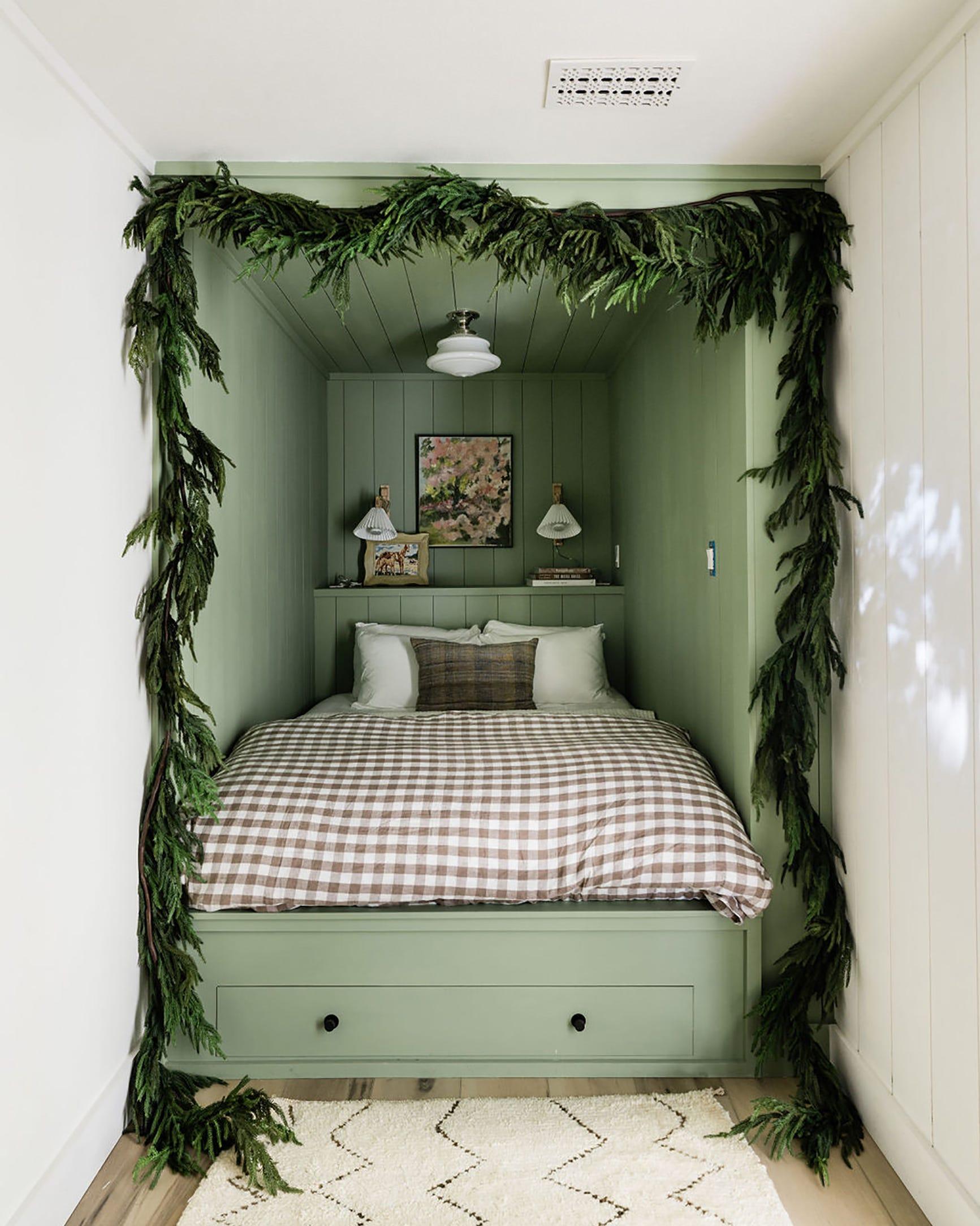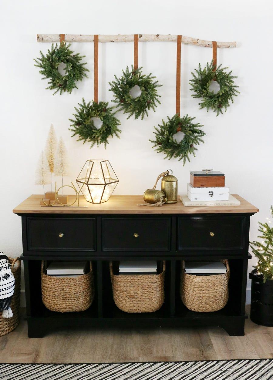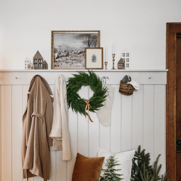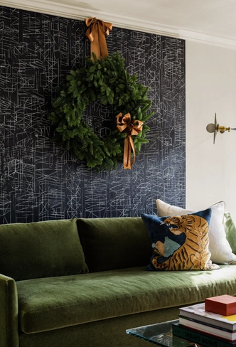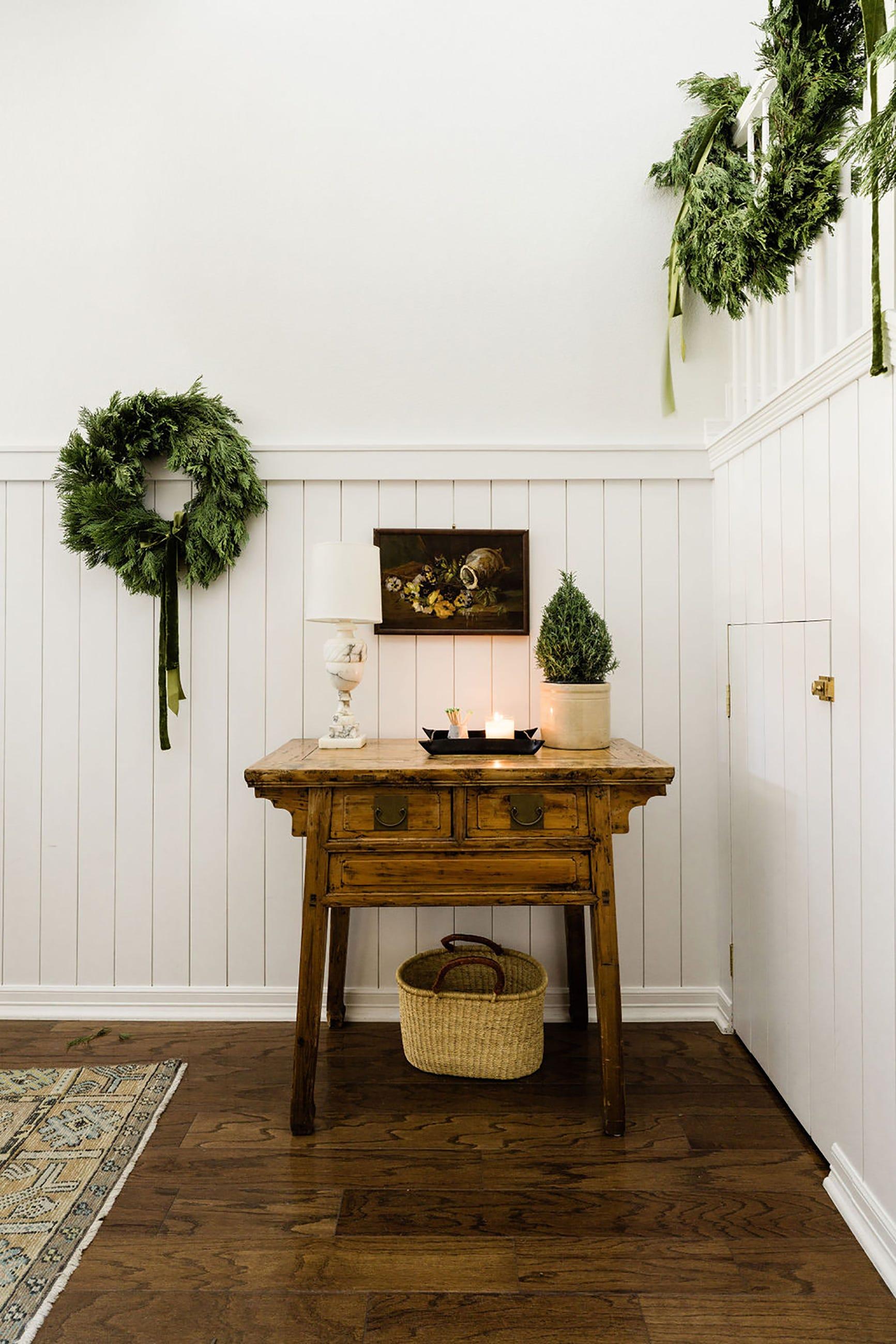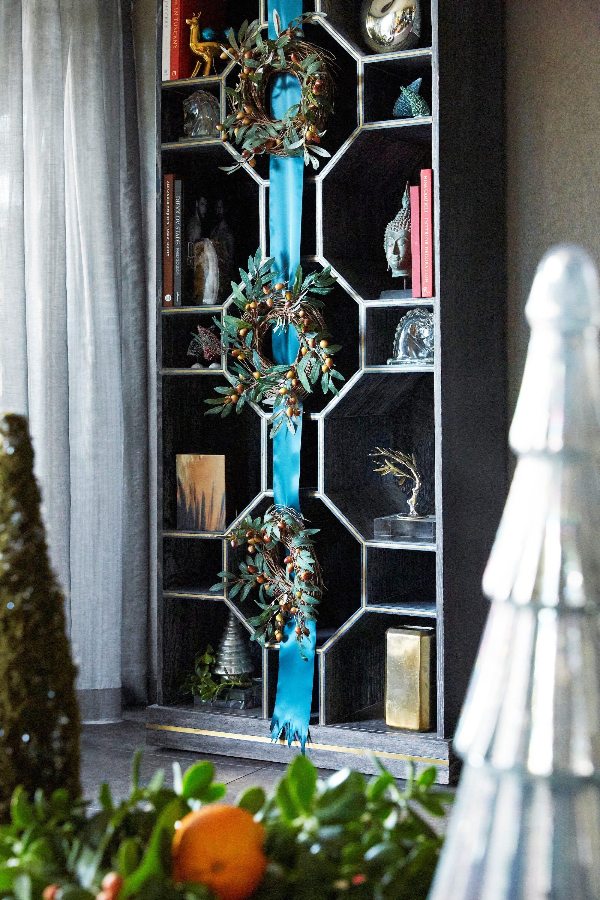 Не загромождайте комнаты дополнительными предметами декора. Можно украсить то, что уже есть. Повесьте венок с лентой в тон текстилю, чтобы ваши украшения гармонировали между собой.