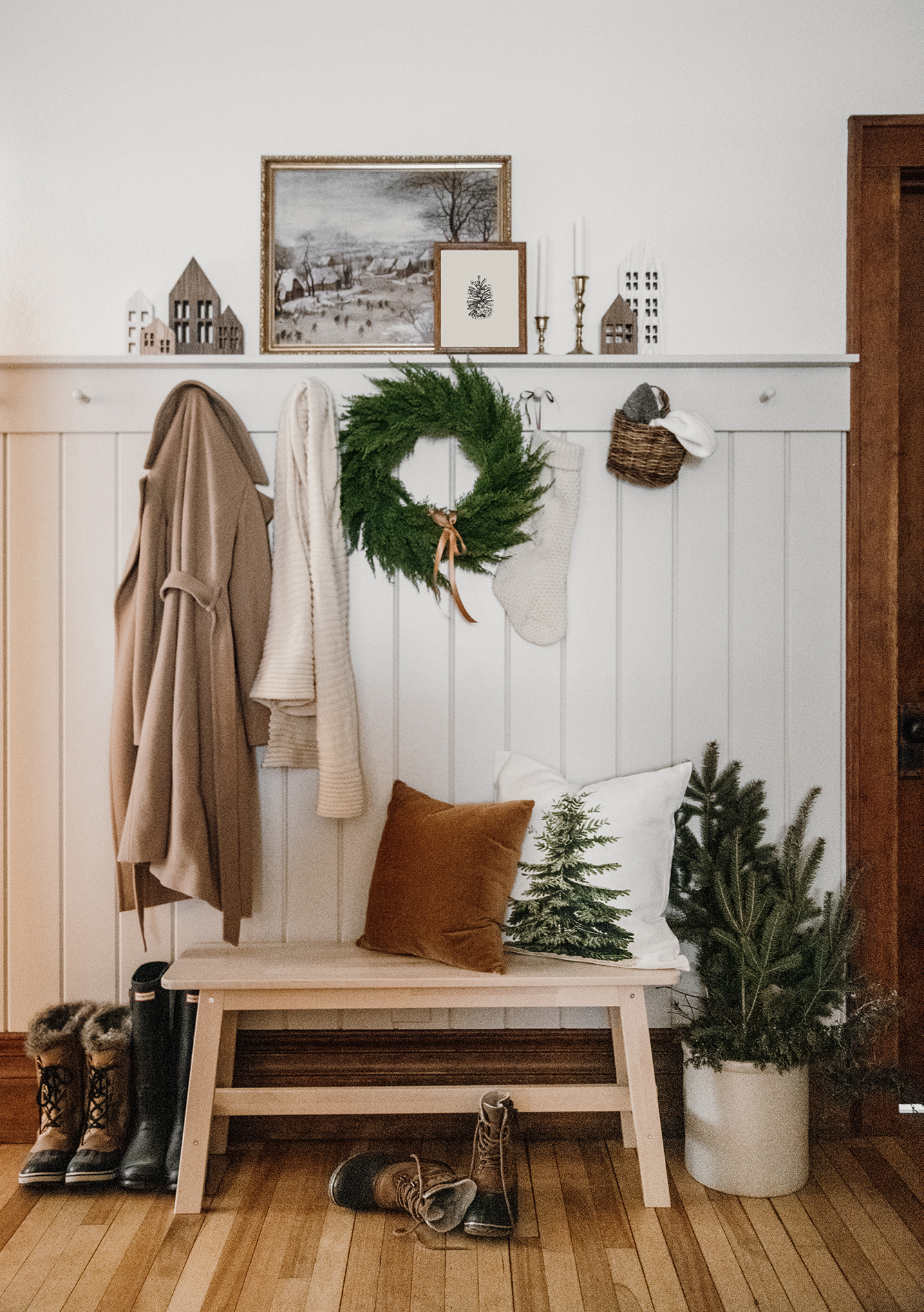 Веточка хвои — и новогодний декор готов. Можно украсить ветвями или гирляндами из ароматных веток зеркала в прихожей или комнатах, столешницы или обрамить ими дверные порталы.