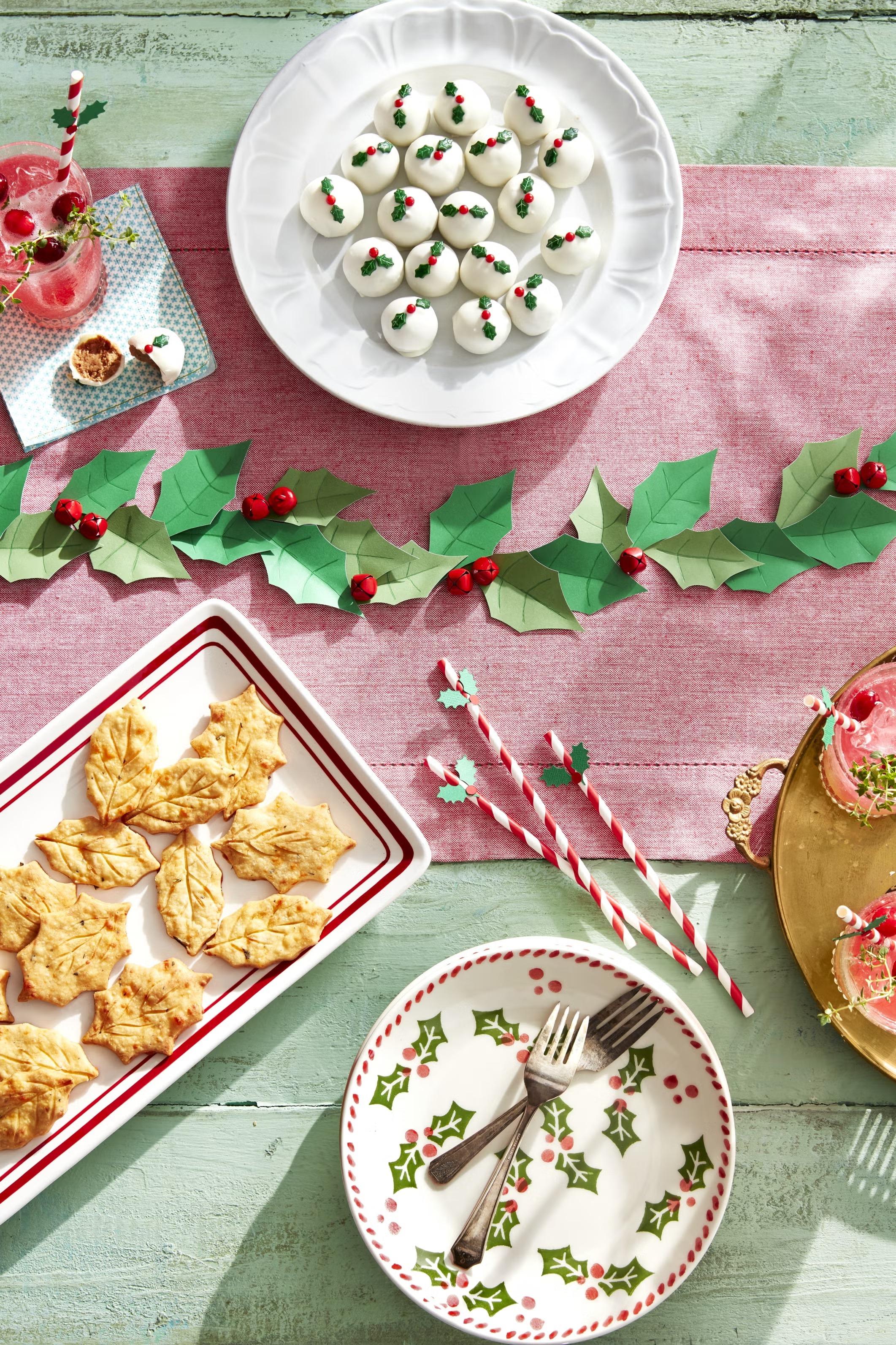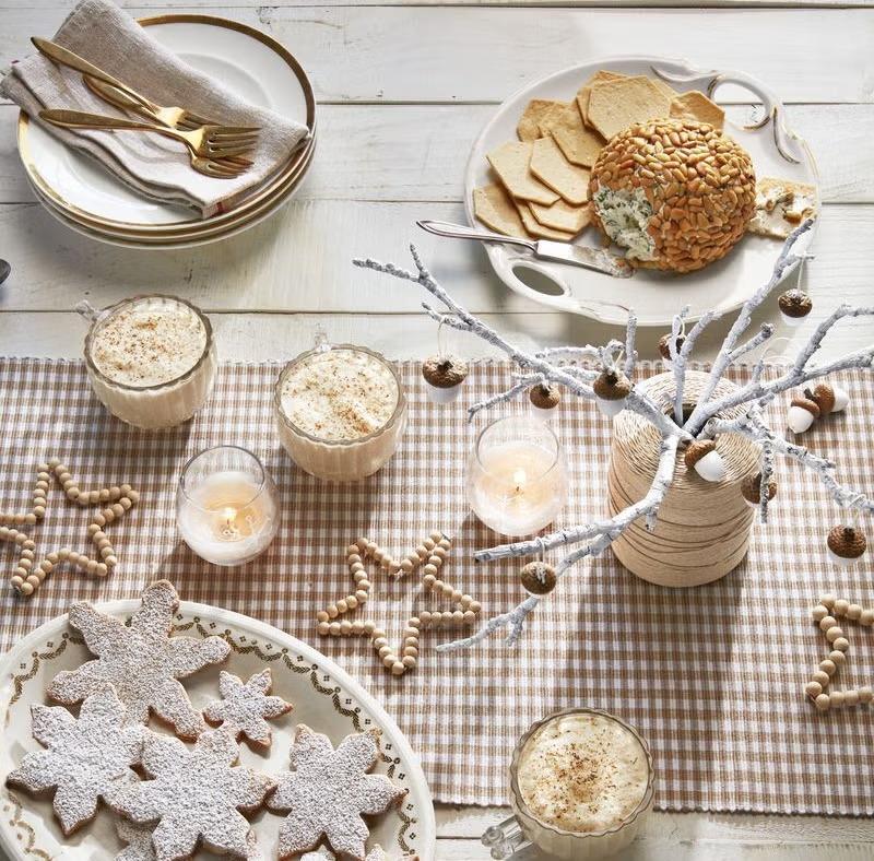 Плетеный поднос или корзинка, несколько веток хвои и яркие ягоды создадут новогоднее настроение, а клетчатый бант добавляет жизнерадостную нотку.