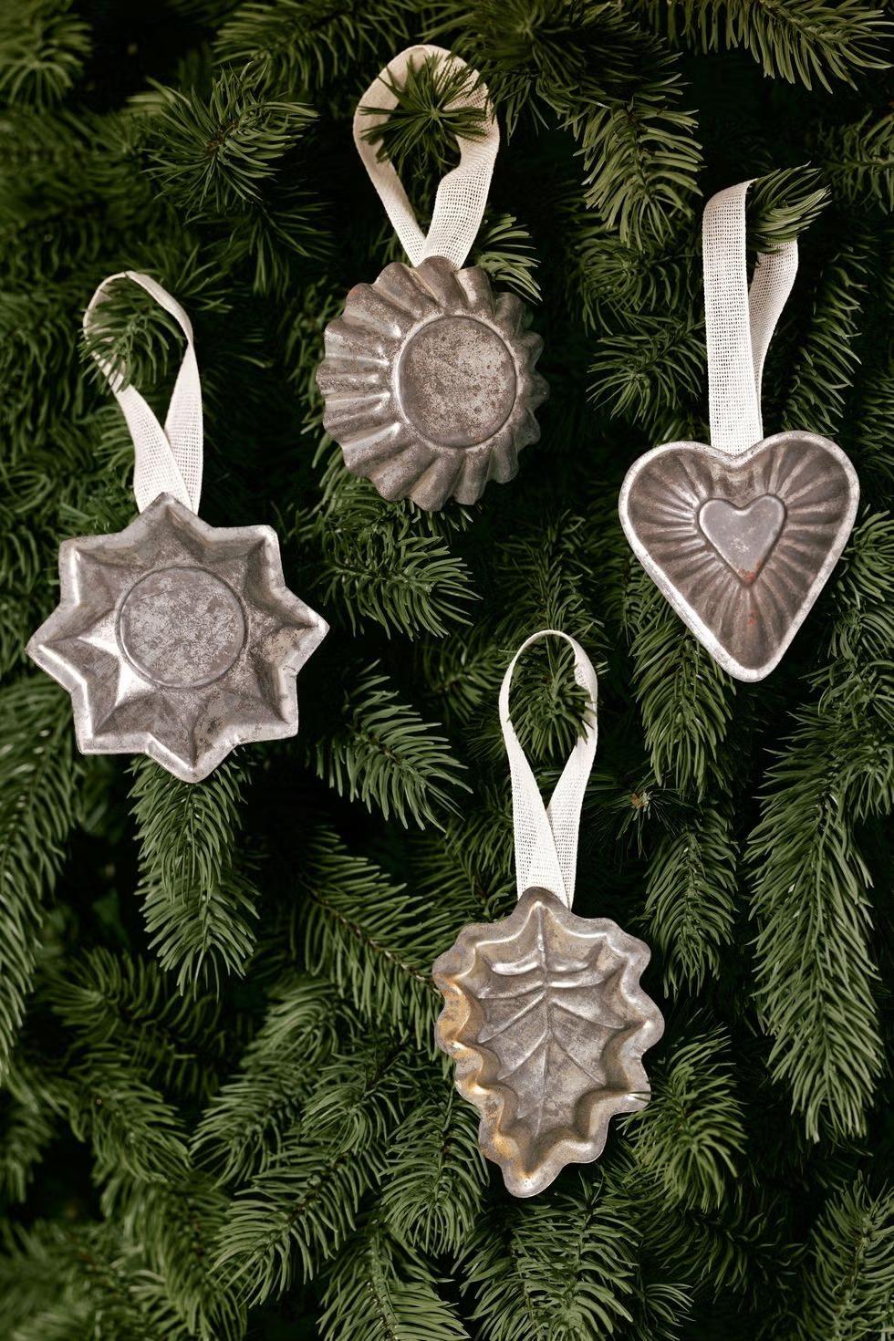 Винтажные формы для выпечки добавят милый штрих любой елочке. Из них легко сделать новогодние украшения: просто приклейте к задней части каждой формы петельки горячим клеем.