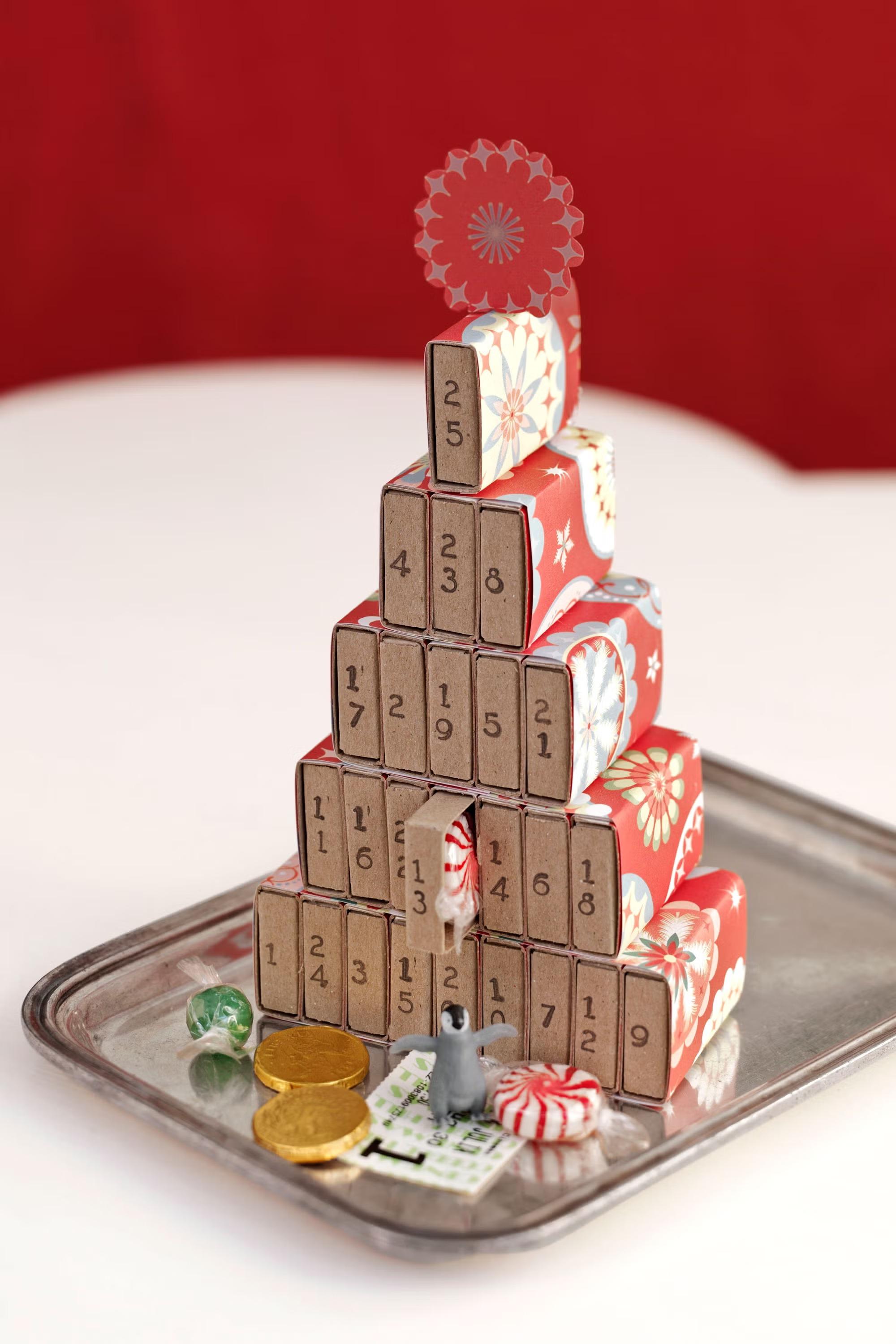 Разрежьте втулки и коробки на части, склейте их кольцами между собой. Если венок будет висеть на стене, сделайте петельку. Внутрь элементов можно разложить шарики или сладости. .
