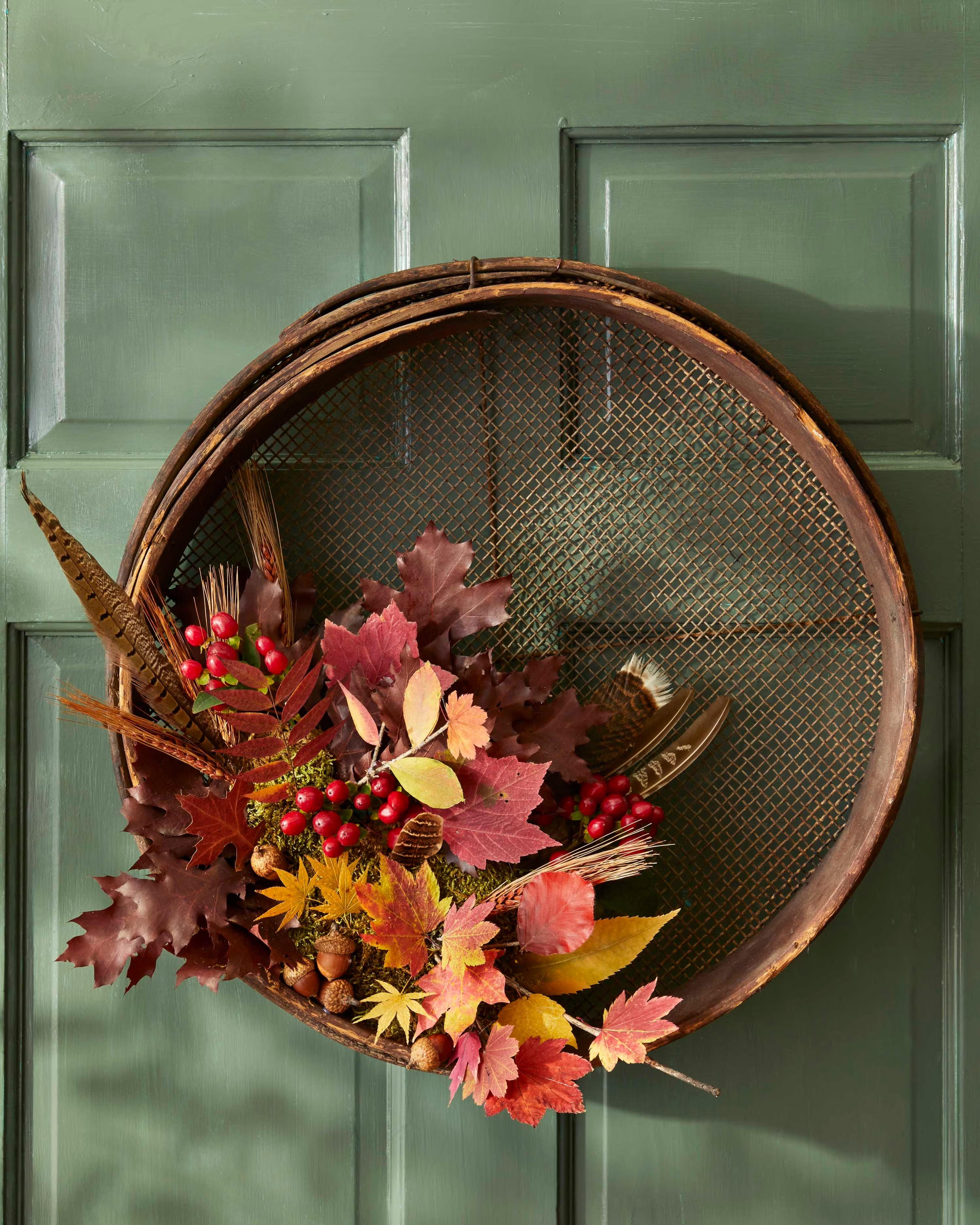 Венок из веток, мха, листьев, венок на подносе, венок из старого сита и корзины, венок из цветов, яблок, ягод, пшеницы… и даже ненужной ткани. Осеннее украшение можно сделать из чего угодно! Даже почти из ничего: просто заплетя бечевку или сухую виноградную лозу, ведь венки бывают не только яркими и пышными, но и более минималистичными. Показываем, какими разными они могут быть.