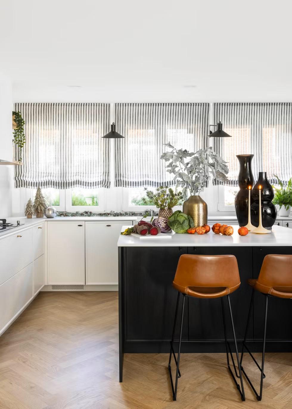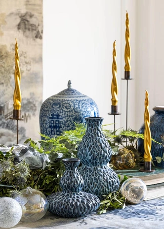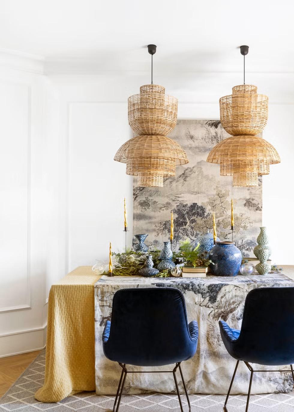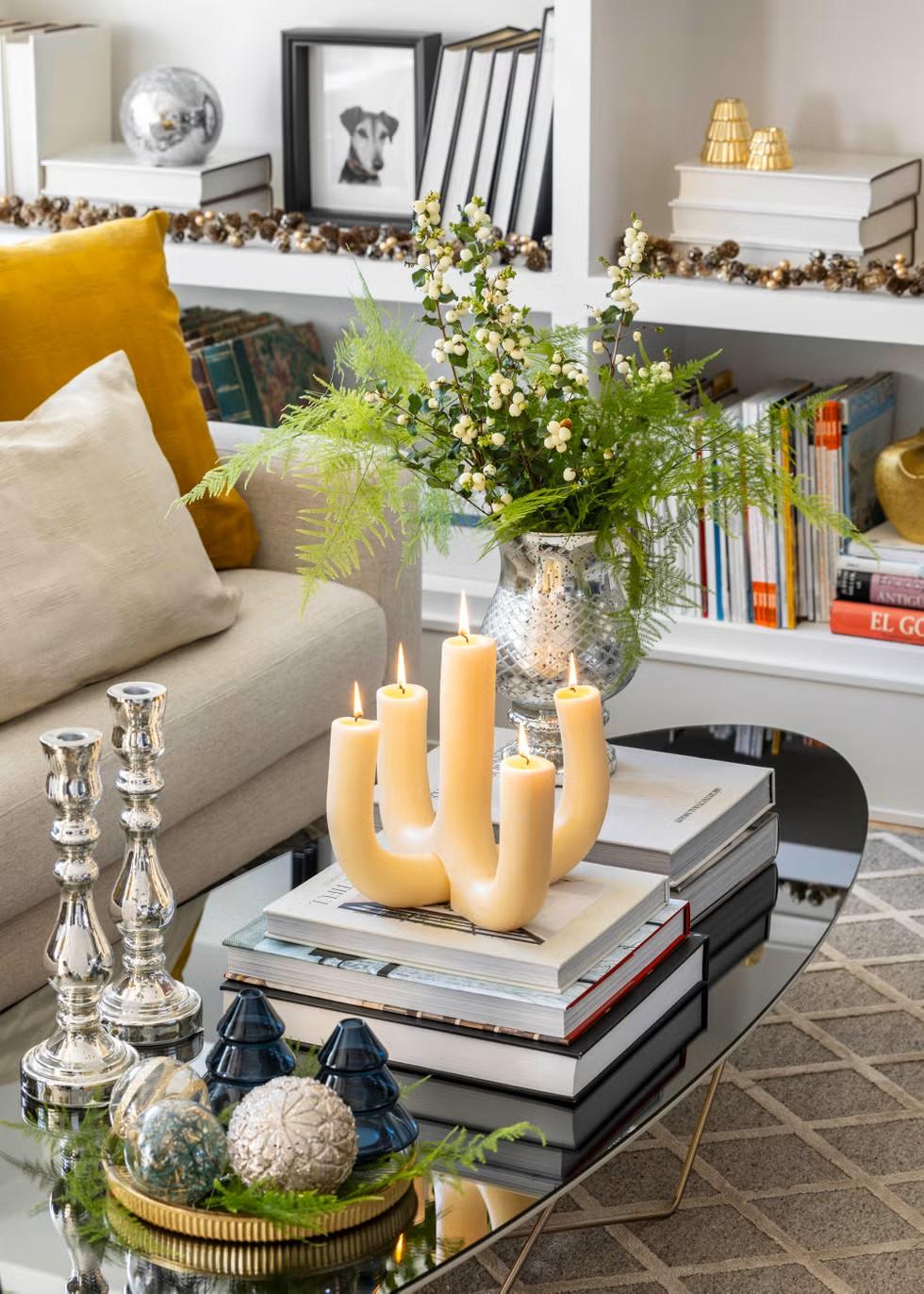 Для новогоднего декора дизайнер выбрала расслабленную и изысканную эстетику, избегая традиционных красных и зеленых оттенков. В основе ее концепции — комбинация текстиля со свечами и цветочными композициями в тон. Ее дом в Бильбао в этом году демонстрирует лаконичное Рождество, выдержанное в синих, серебряных и золотых цветах с обилием растительного декора.
