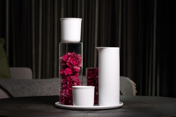 В простоте форм и чистоте цвета видны отсылки к японскому минимализму, сам фарфор, несмотря на современное исполнение, подходит не только для неформальной обстановки, но и для более официальной сервировки. Каждый предмет коллекций доступен в двух вариантах: классическая блестящая глазурь или мягкое сатиновое покрытие.