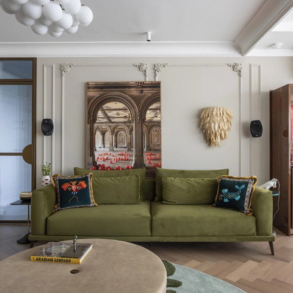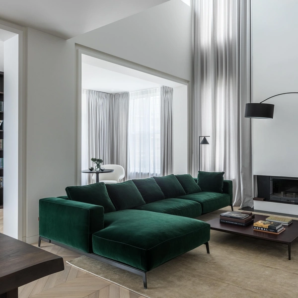 Мох, оттенки хвои или свежей травы, изумрудный и болотный, цвет яблока или лайма — у зееного много вариантов, которые подходят и для сторонников спокойных интерьеров, и оля любитеей ярких красок. Любовь к зеленому цвету никуда не делась: дизайнеры и заказчики любят его за близость к природной гамме и практичность. Собрали зеленые диваны разного размера и форм из проектов по всему свету, посмотрите, как органично он вписываются в любую обстановку!