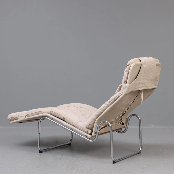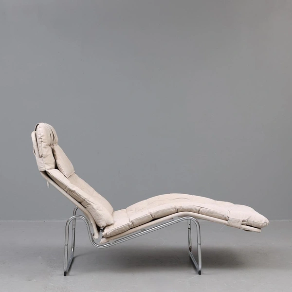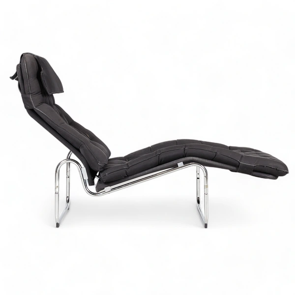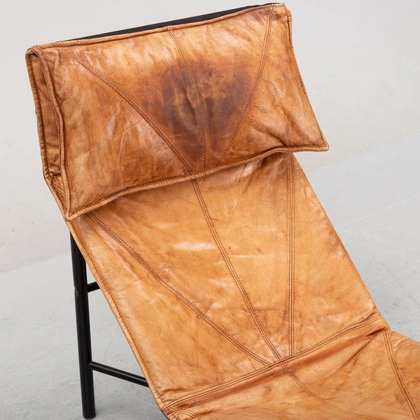 Кожа, как известно, красиво стареет, что подтверждает этот шезлонг Торда Бьерклунда (Tord Björklund) начала 1980-х годов. Изготовленный из кожи коньячного или черного цвета с хромированным каркасом, он отлично смотрится даже сегодня.