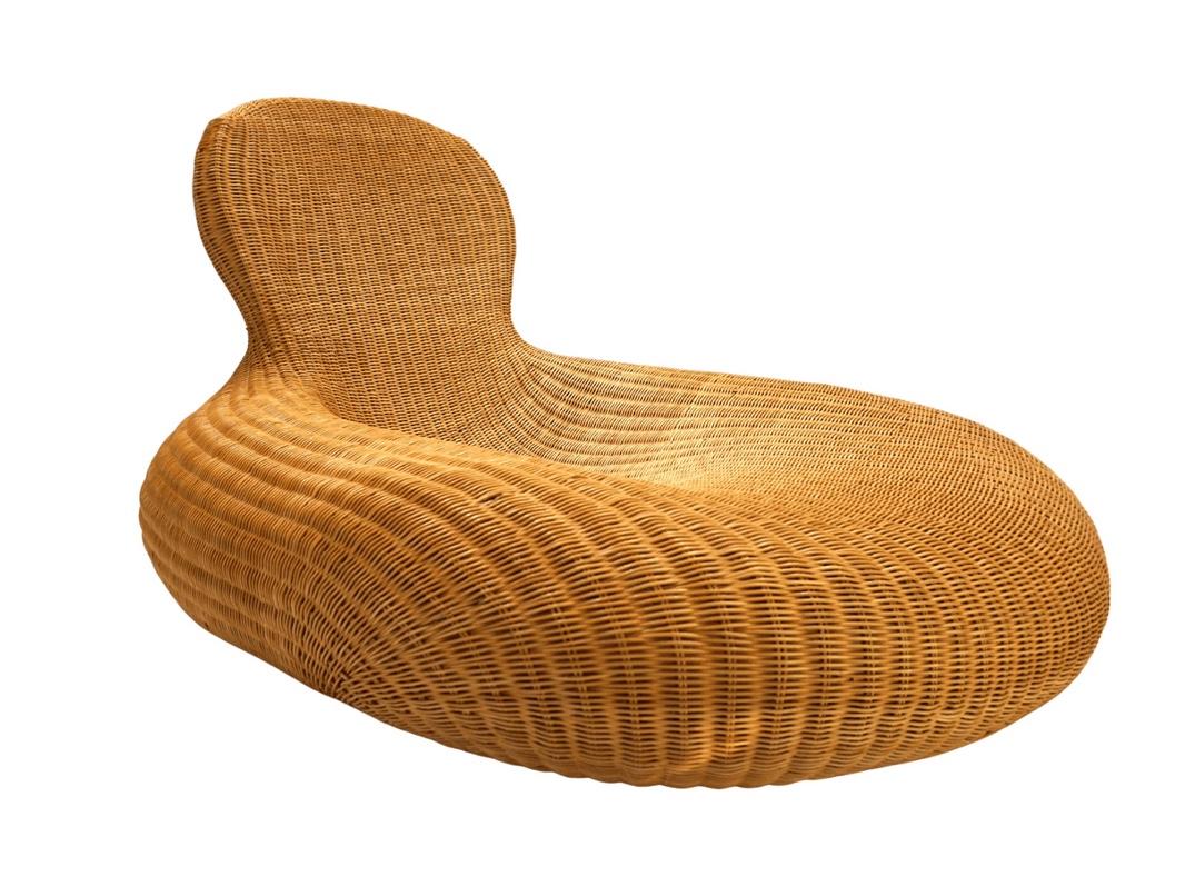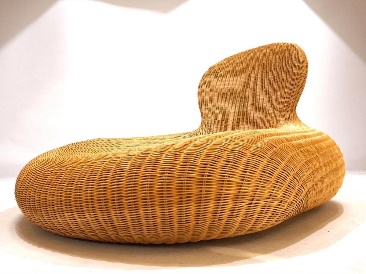 Этот относительно новый винтажный предмет, датируемый началом 2000-х годов, уже стоит 2200 евро на некоторых платформах. Его органичная форма и натуральные материалы актуальны и сейчас. Оно прекрасно смотрится в гостиной или спальне, а также на балконе или крытой террасе.