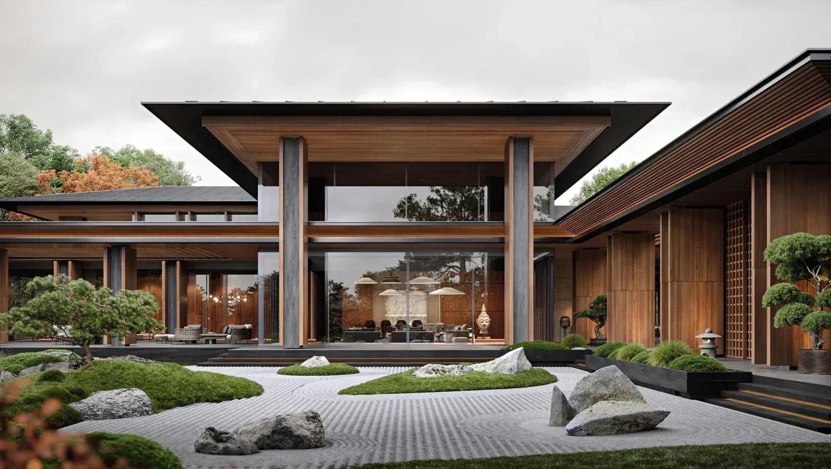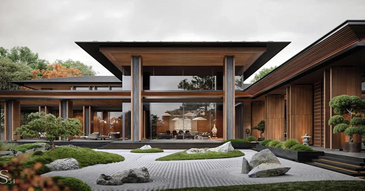 За последние года два вырос интерес к азиатским мотивам, поэтому в современную архитектуру часто интегрируют принципы Васту, философию фэншуй и японскую культуру. Однажды к нам обратился заказчик с просьбой создать резиденцию, вдохновленную Страной восходящего солнца. Это помогло бы жене меньше тосковать по родным краям. Мы старались отразить архитектурные принципы Японии: простоту, уединенность, покой и единение с природой.
