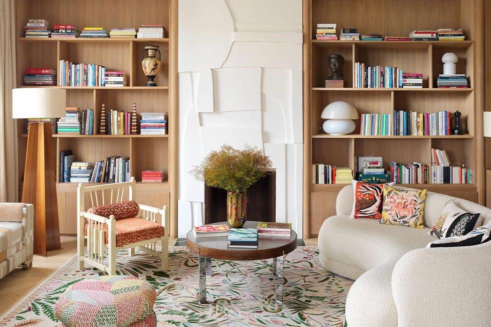 Проект Лауры Гонсалес в Париже. Дизайнер вносит цвет с помощью ковр, уютных подушек и фактуры обивки