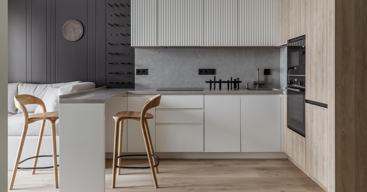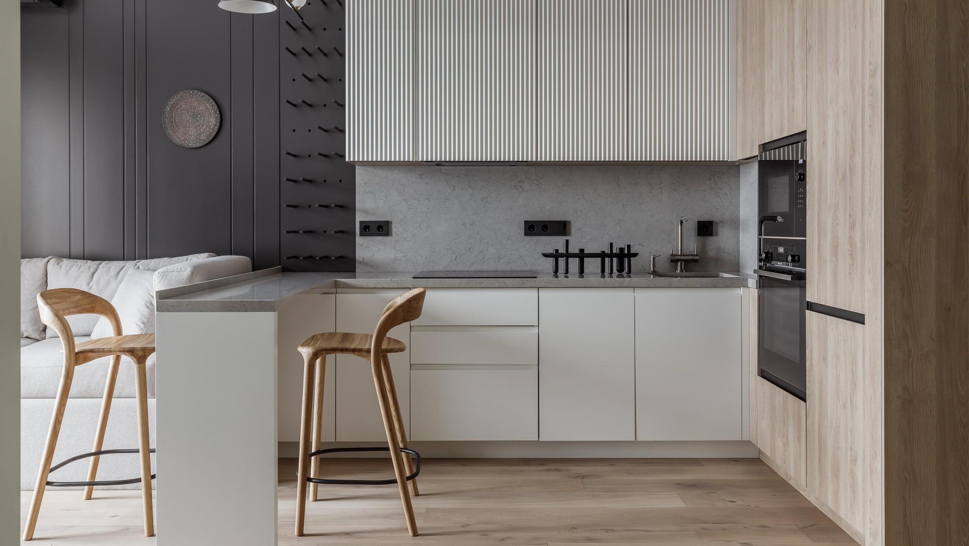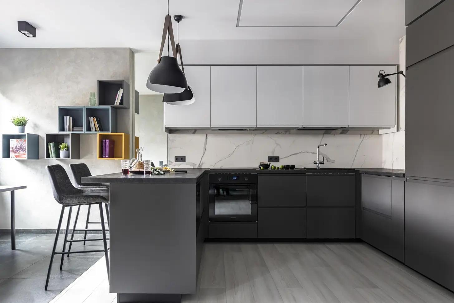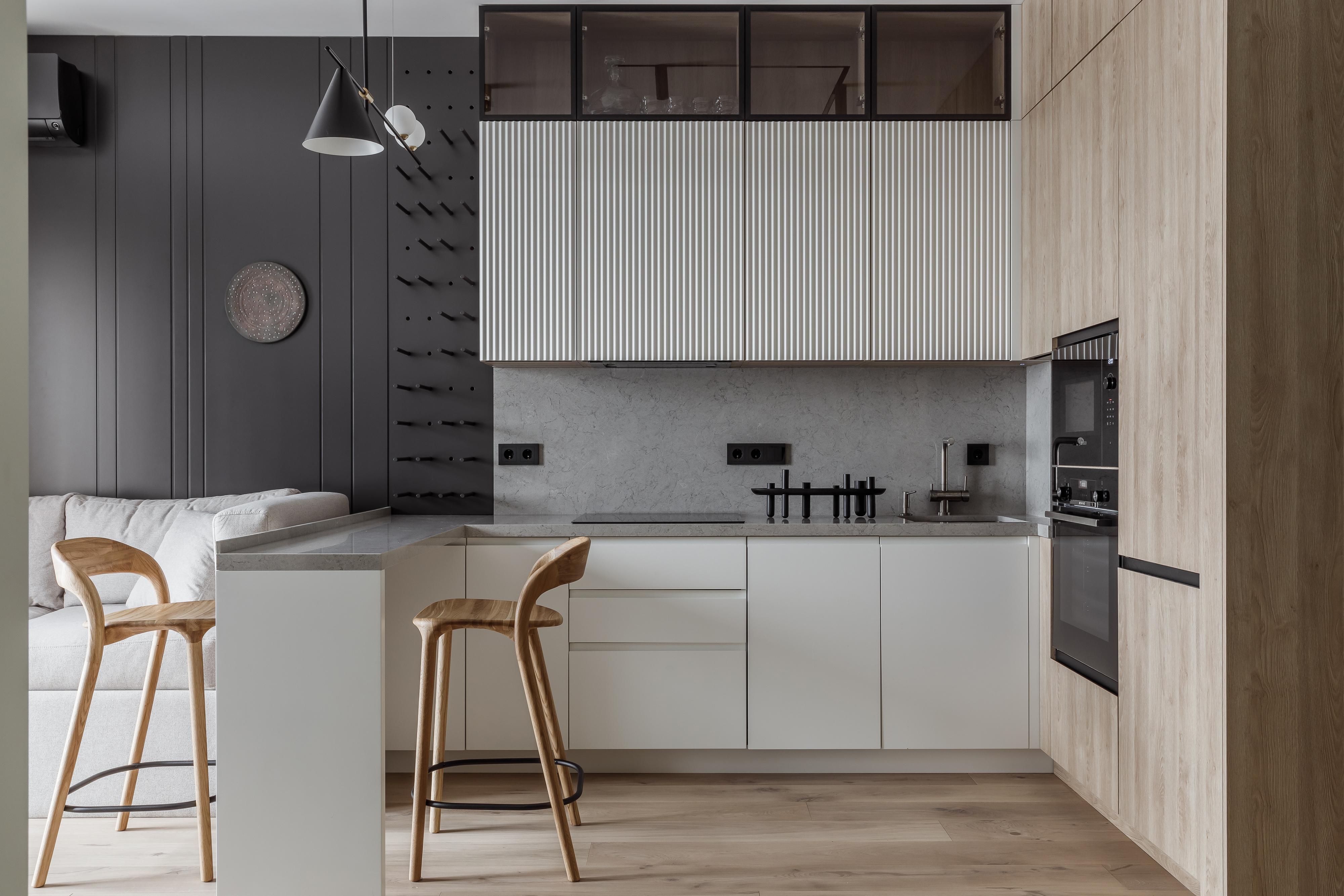 Полуостров должен гармонировать с остальной кухней, поэтому при выборе материалов для столешницы и фасадов важно учитывать общую стилистику. Например, если кухня выполнена в монохромной гамме, полуостров может стать её продолжением, создавая целостный образ.