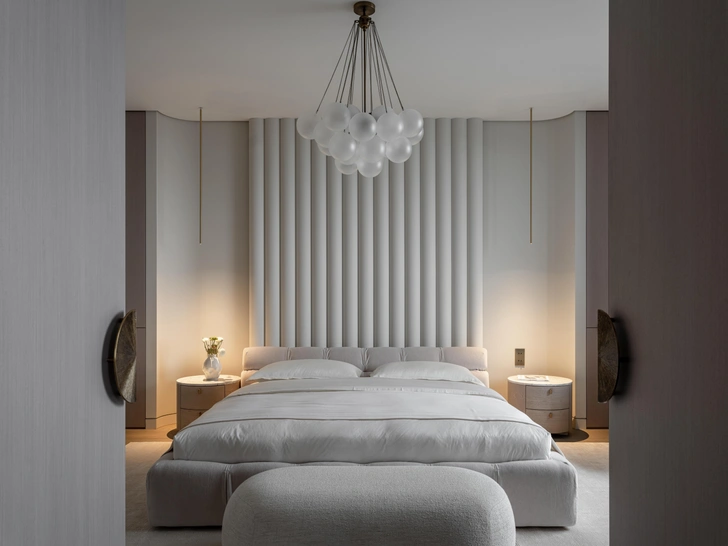 Мы часто недооцениваем то, как сильно на нас влияет освещение: температура света, расположение светильников… Старайтесь выбирать для спальни лампочки с теплой температурой — они действуют успокаивающе, в отличие от резкого холодного света. Теперь про сами светильники. Советуем выбирать тканевые или матовые стеклянные плафоны — такая текстура мягко рассеивает свет. У кроватей повесьте бра — так можно освободить место на тумбах. Поиграйте с разными сценариями освещения — вы удивитесь, как это преобразит вашу спальню.