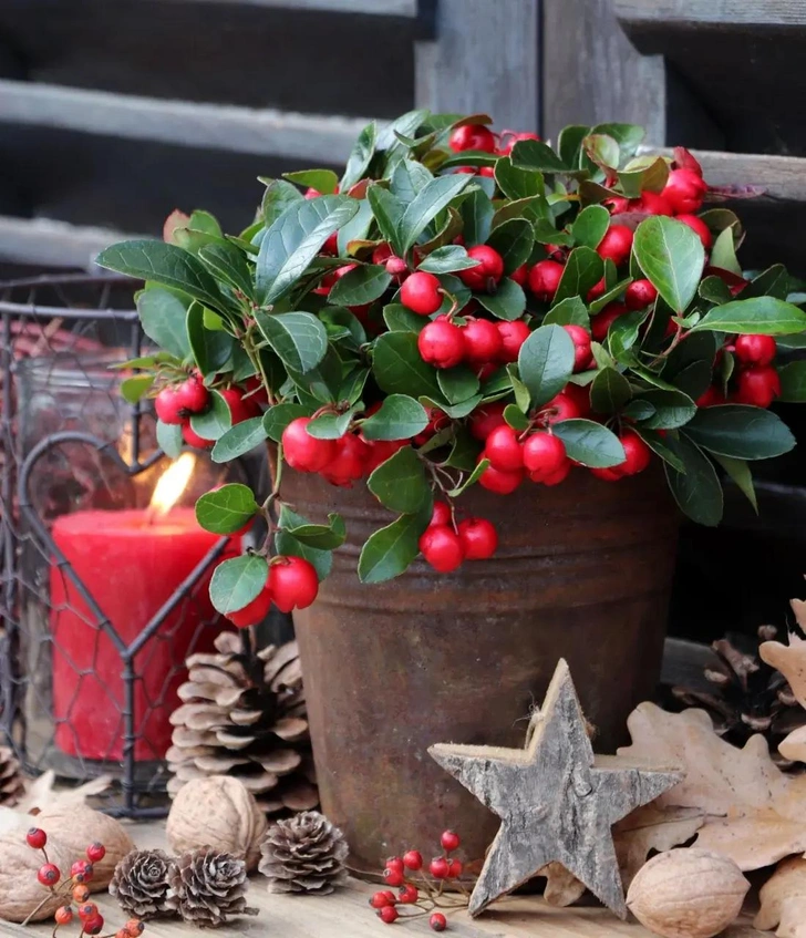 Эти низкорослые вечнозеленые кустарники ценятся за праздничные ярко-розовые или красные ягоды, которые украшают растение всю зиму. Гаультерия идеальна для подвесных корзин и кашпо и отлично сочетается со стелющимся плющом. Ее ягоды привлекают в сад птиц, а при растирании издают легкий аромат.