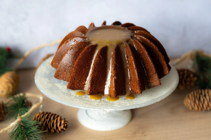 Классический английский рождественский кекс станет украшением праздничного стола. Ароматный и пряный, он создает особую атмосферу уюта, а струящаяся ромовая* карамель добавляет ему волшебства.
