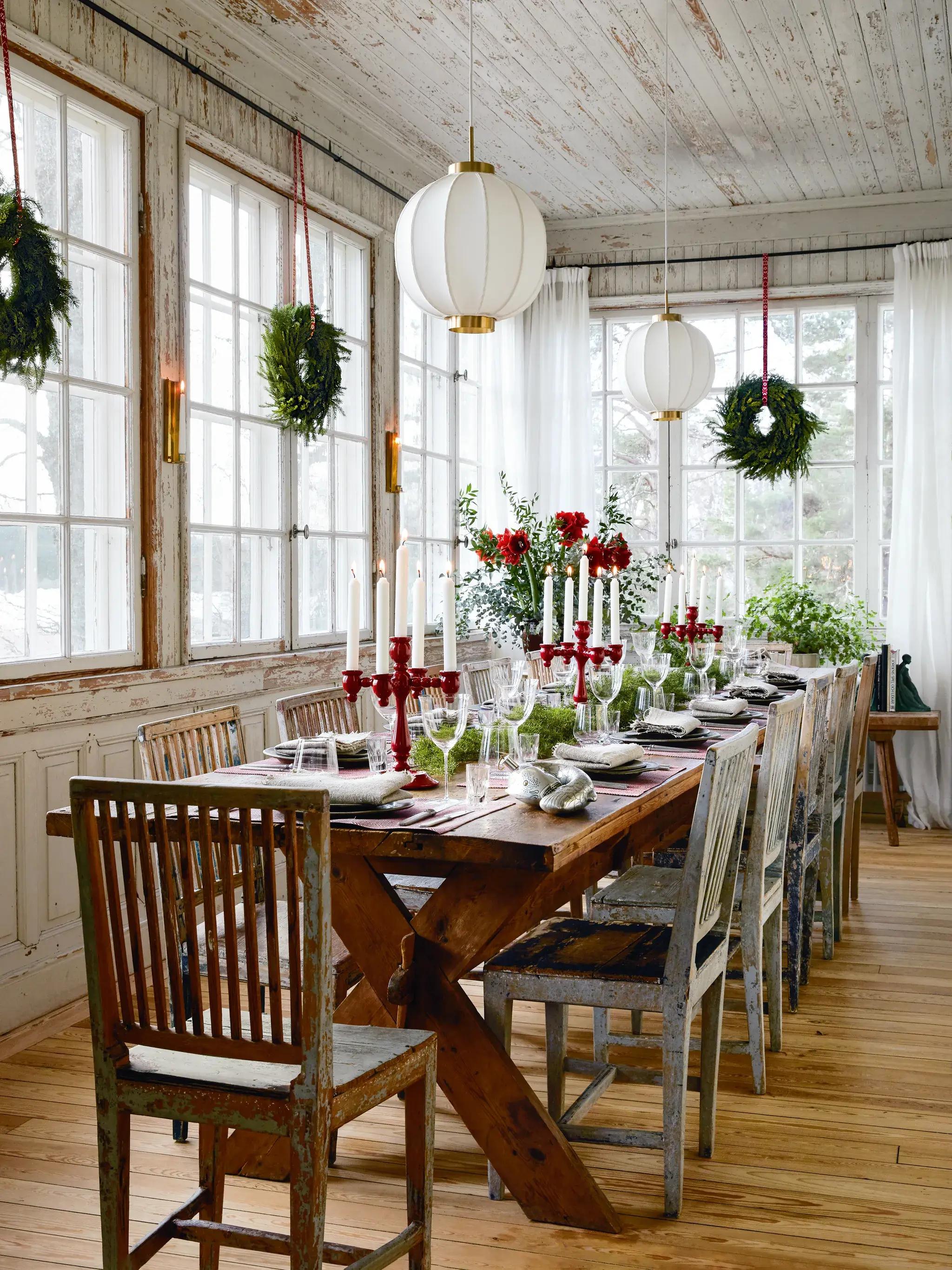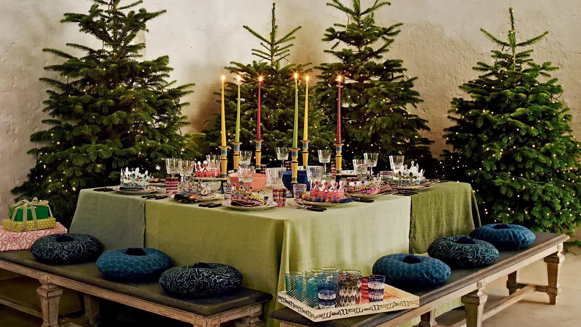Конечно, у вас могут быть проверенные схемы новогоднего декорирования — например, украшенная игрушками елка или светящиеся гирлянды по всему дому. Но почему бы не пересмотреть привычный новогодний декор в этом году? Роскошные одеяла из искусственного меха, банты вместо мишуры, сервировка с красивой посудой и сверкающие хрустальные подсвечники — недостатка в идеях сегодня точно нет!
