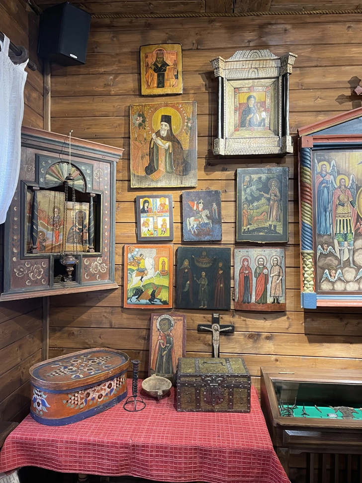 Есть традиция обустройства домашнего иконостаса или «красного угла» — понятие, идущее из древности. В современных условиях ему может соответствовать специально выделенная для этого зона, например, отдельная полка или столик. Можно из нескольких икон, подобранных по стилю или сюжету, сформировать композиционное пространство на стене, создав своего рода камерную экспозицию, как это делала императрица Александра Федоровна в своих покоях.
