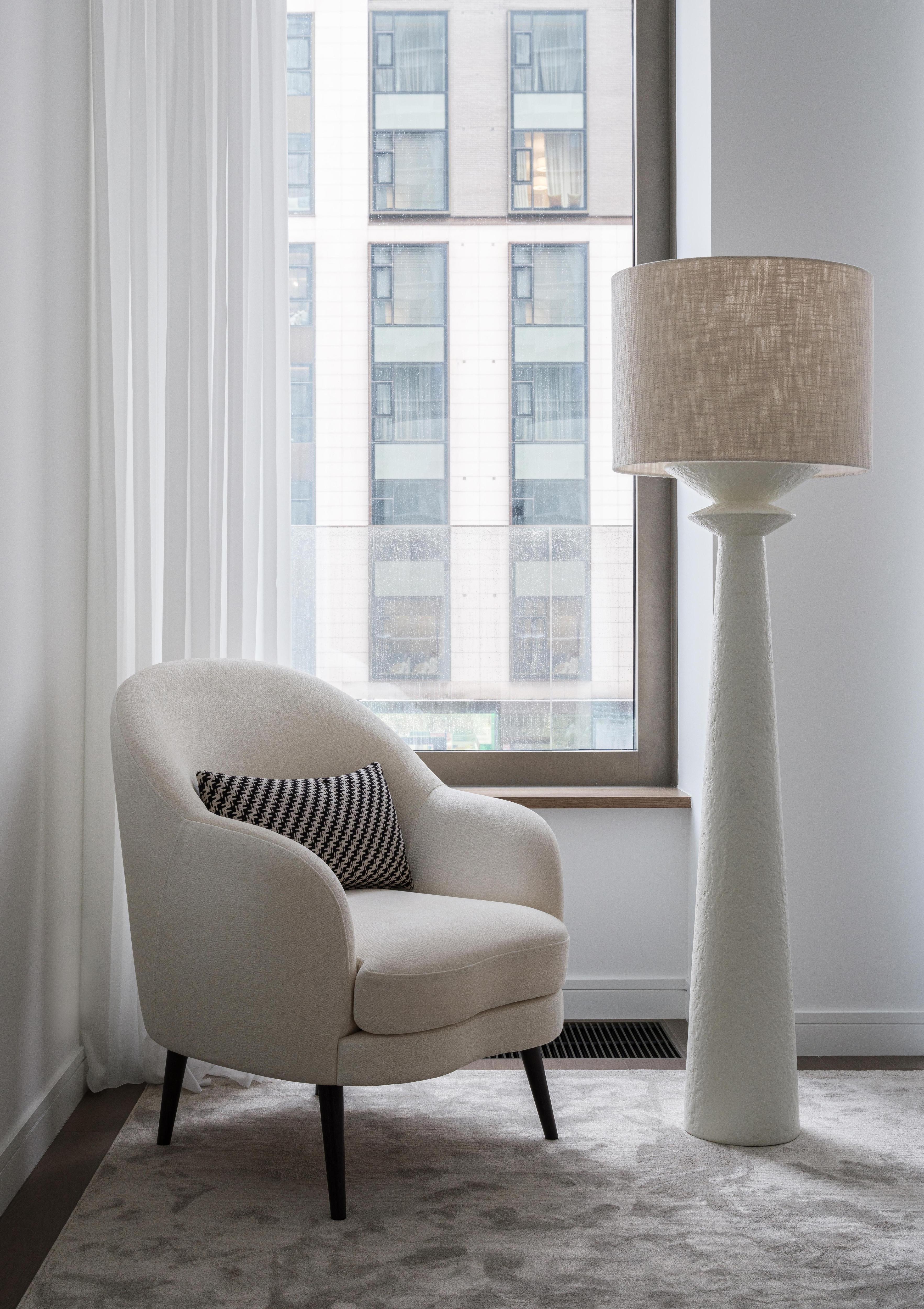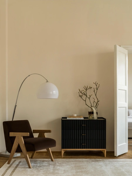 Если в зоне чтения есть боковой столик, консоль или комод, можно поставить настольную лампу. Верхний срез плафона должен находиться на уровне ваших глаз, когда вы сидите, а световой поток должен падать на рабочую поверхность под углом примерно 45 градусов.