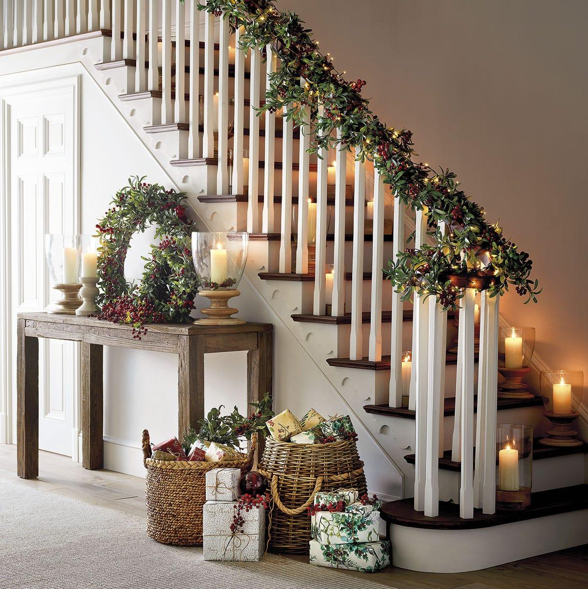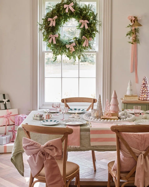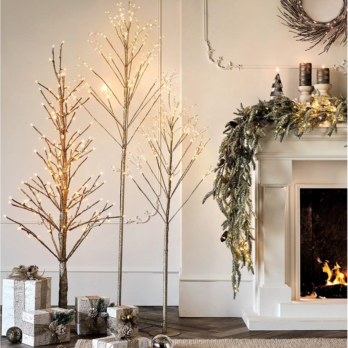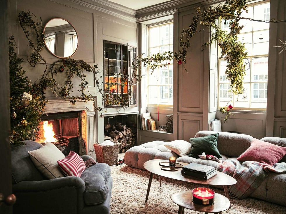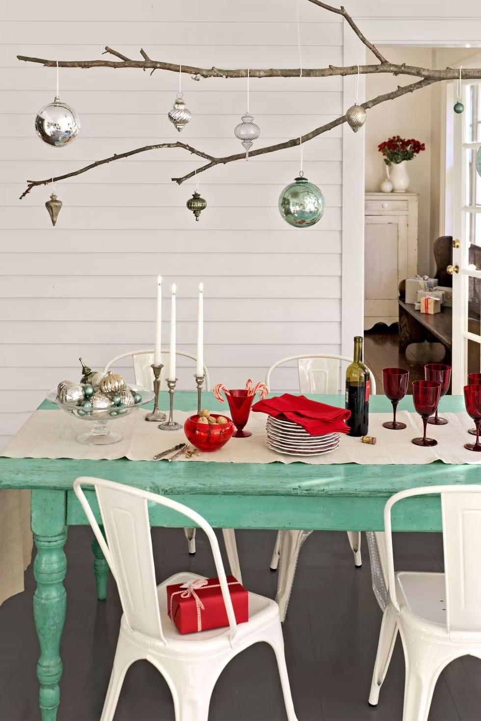 Зеленые сосновые или эвкалиптовые ветви могут стать украшением стола или каминной полки, лестничных перил — или даже просто стен. Они привнесут в интерьер атмосферу природы и тепла, не ограничиваясь одним углом гостиной, как традиционные елки. Гирлянды можно дополнить натуральными шишками, лентами, подсветкой и и, конечно же, всевозможными игрушками.