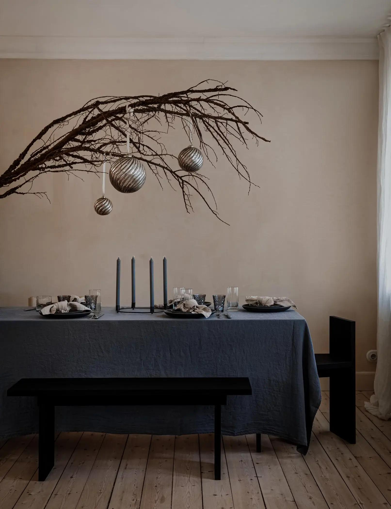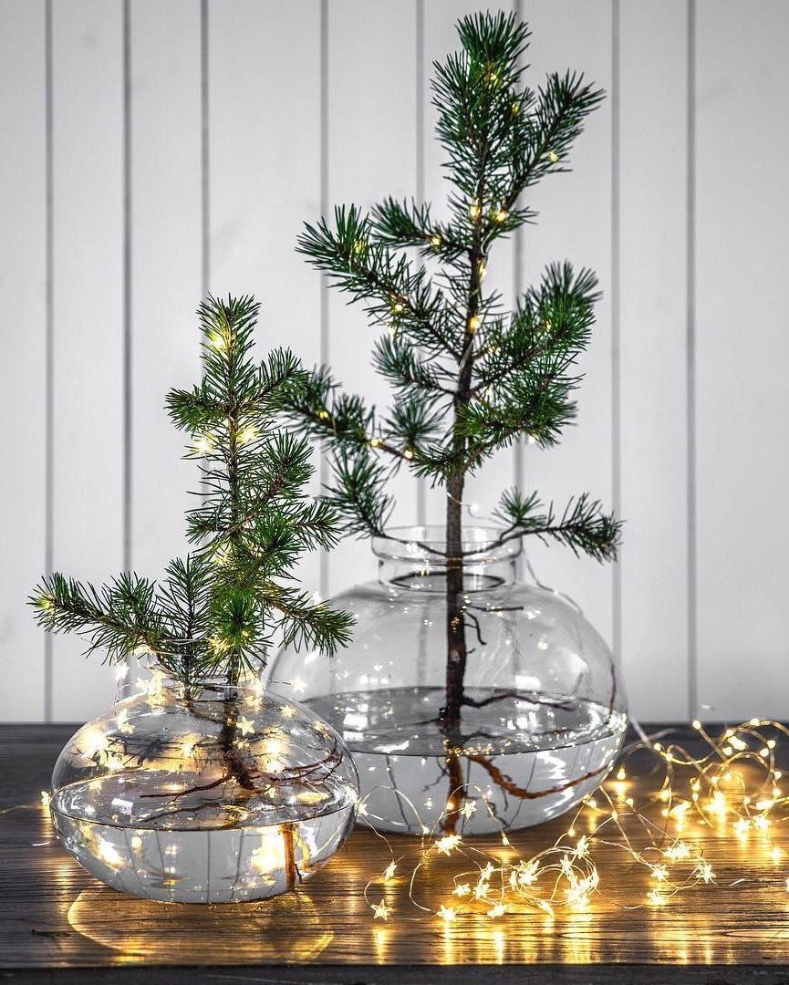 Это модный тренд новогоднего декора, его можно увидеть почти во всех съемках и витринах брендов домашнего декора. Понадобятся лишь лапник, эвкалипт или тонкие ветки лиственных деревьев, которые легко найти во время прогулок. Можно поставить ветви в вазы, подвесить их в виде венков, гирлянд или декоративных композиций. Добавьте небольшие украшения, текстиль или белые светодиодные гирлянды.
