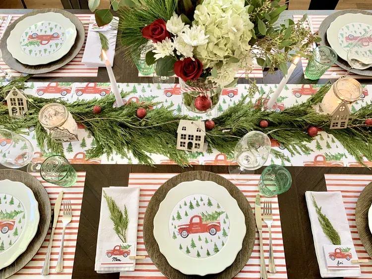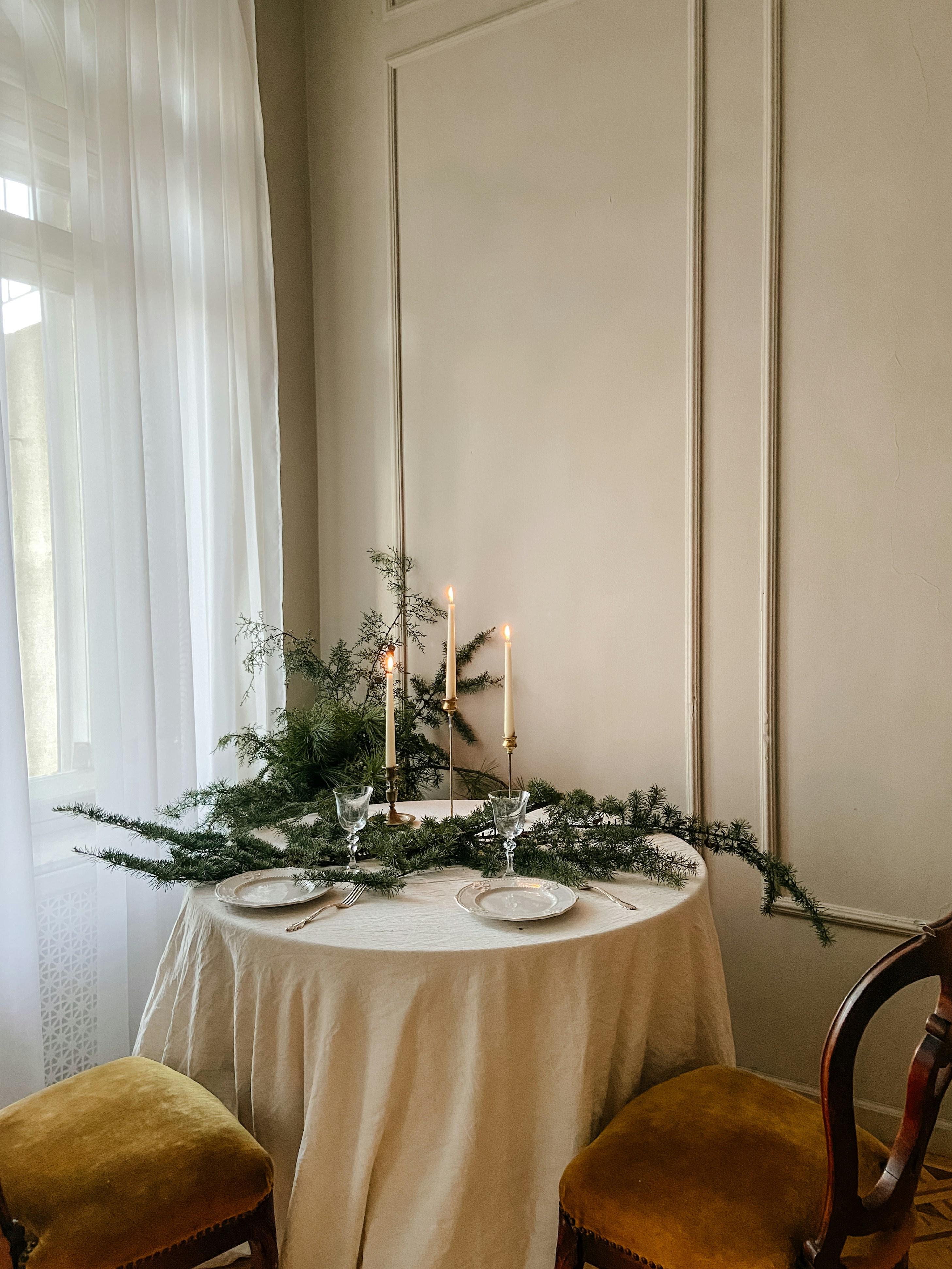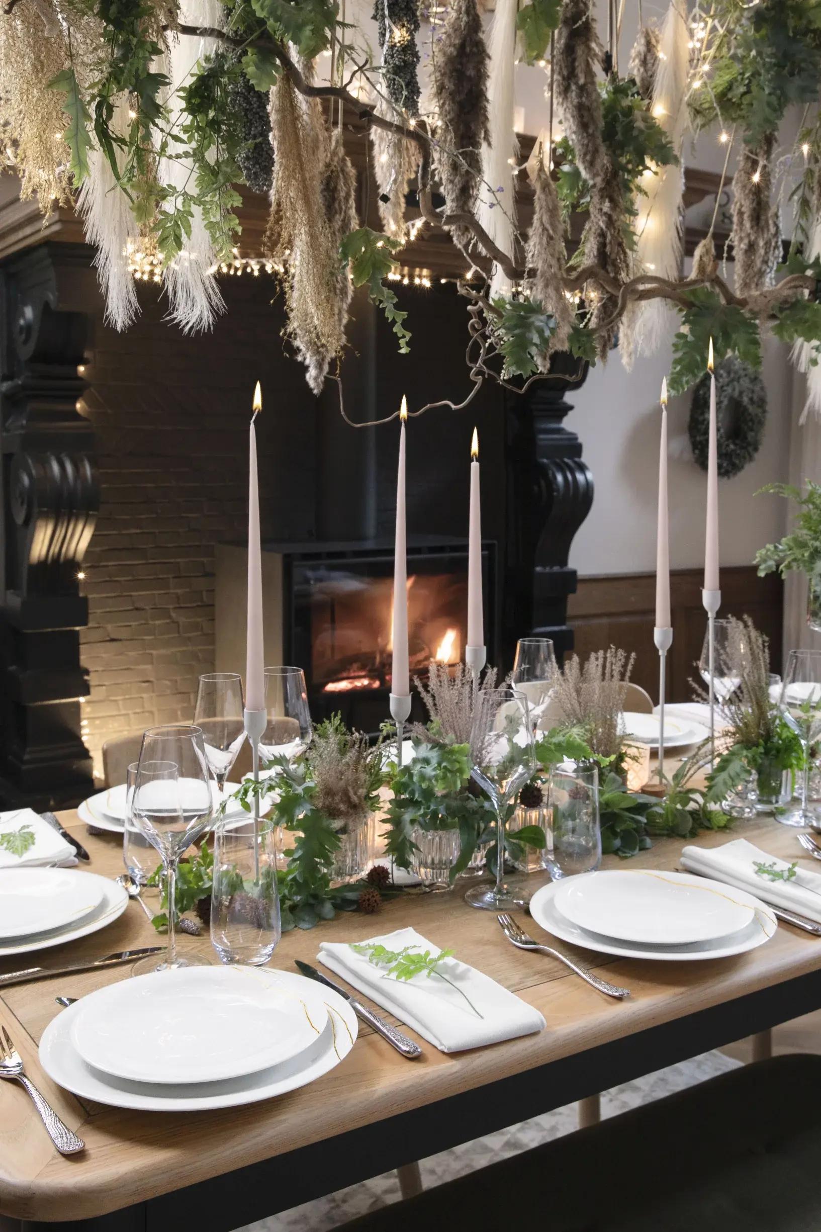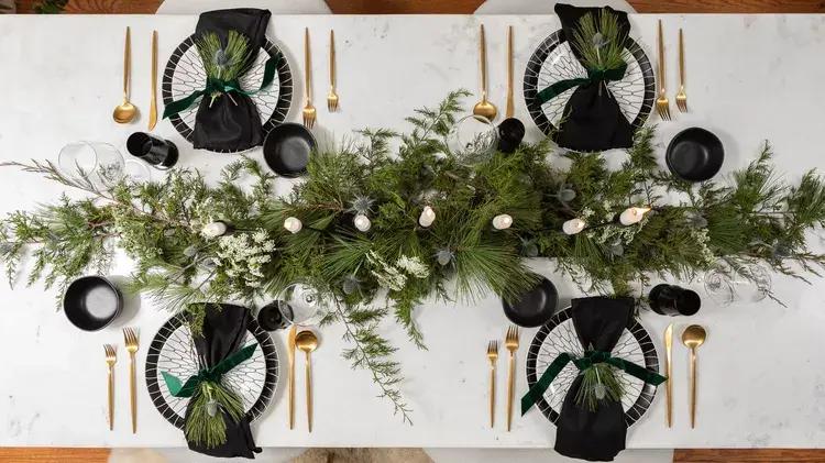 Связки еловых веток, омела, белые нарциссы — не стесняйтесь дополнить эти растения елочными игрушками, птичками на прищепках, гофрированными бумажными украшениями.