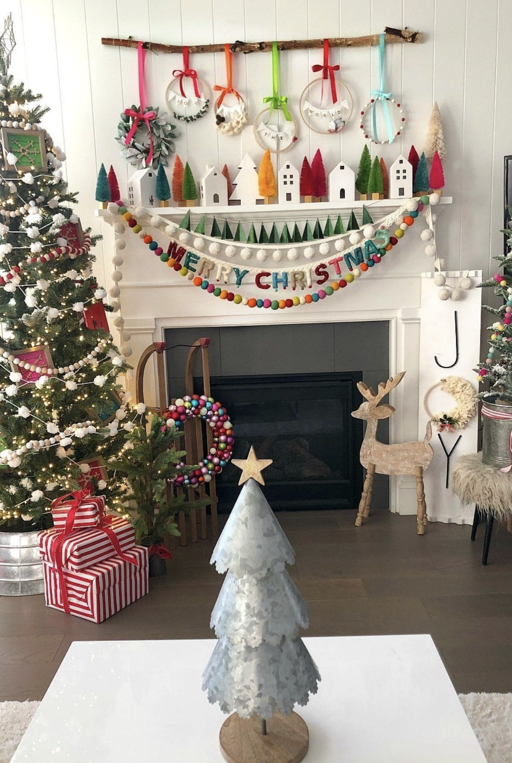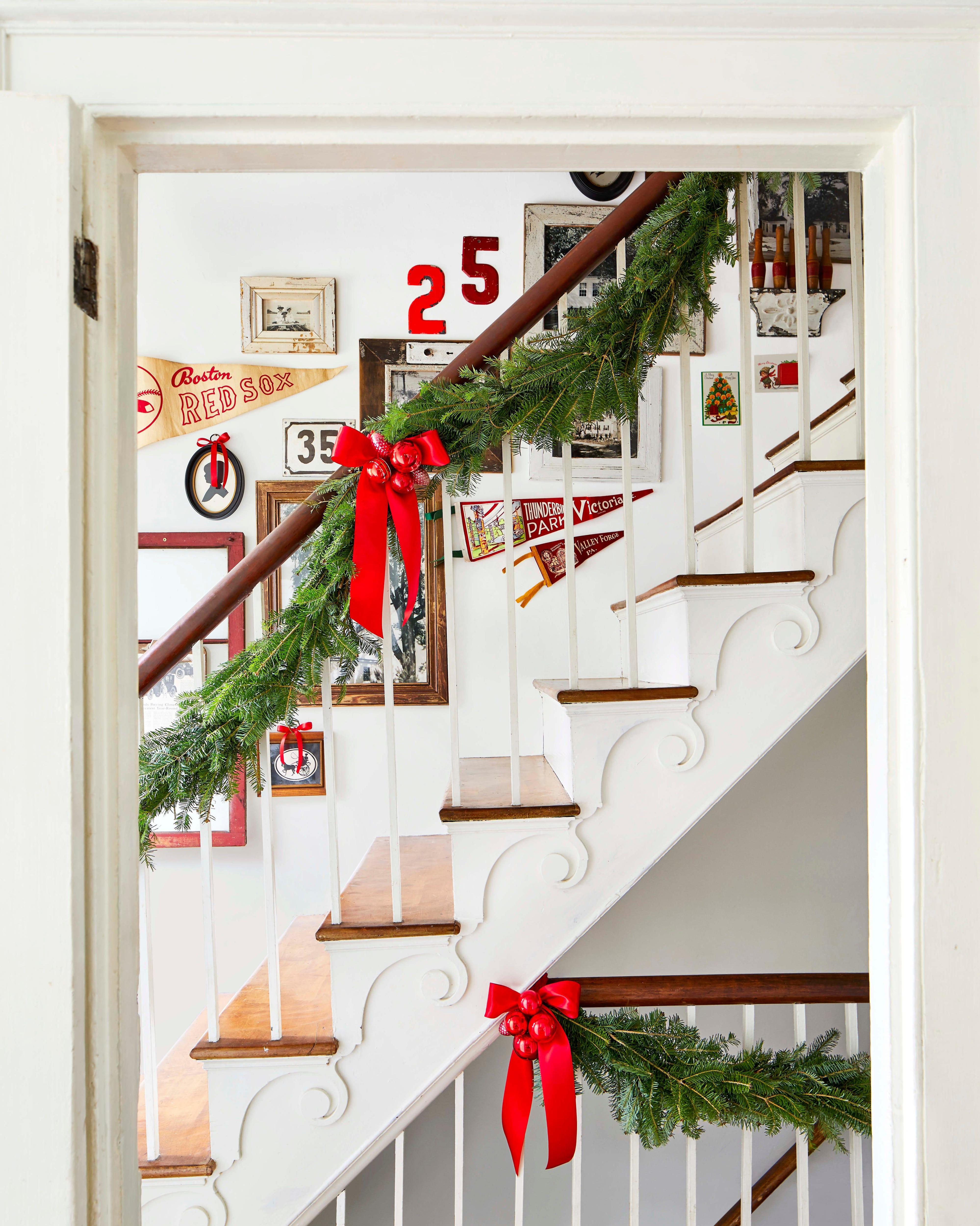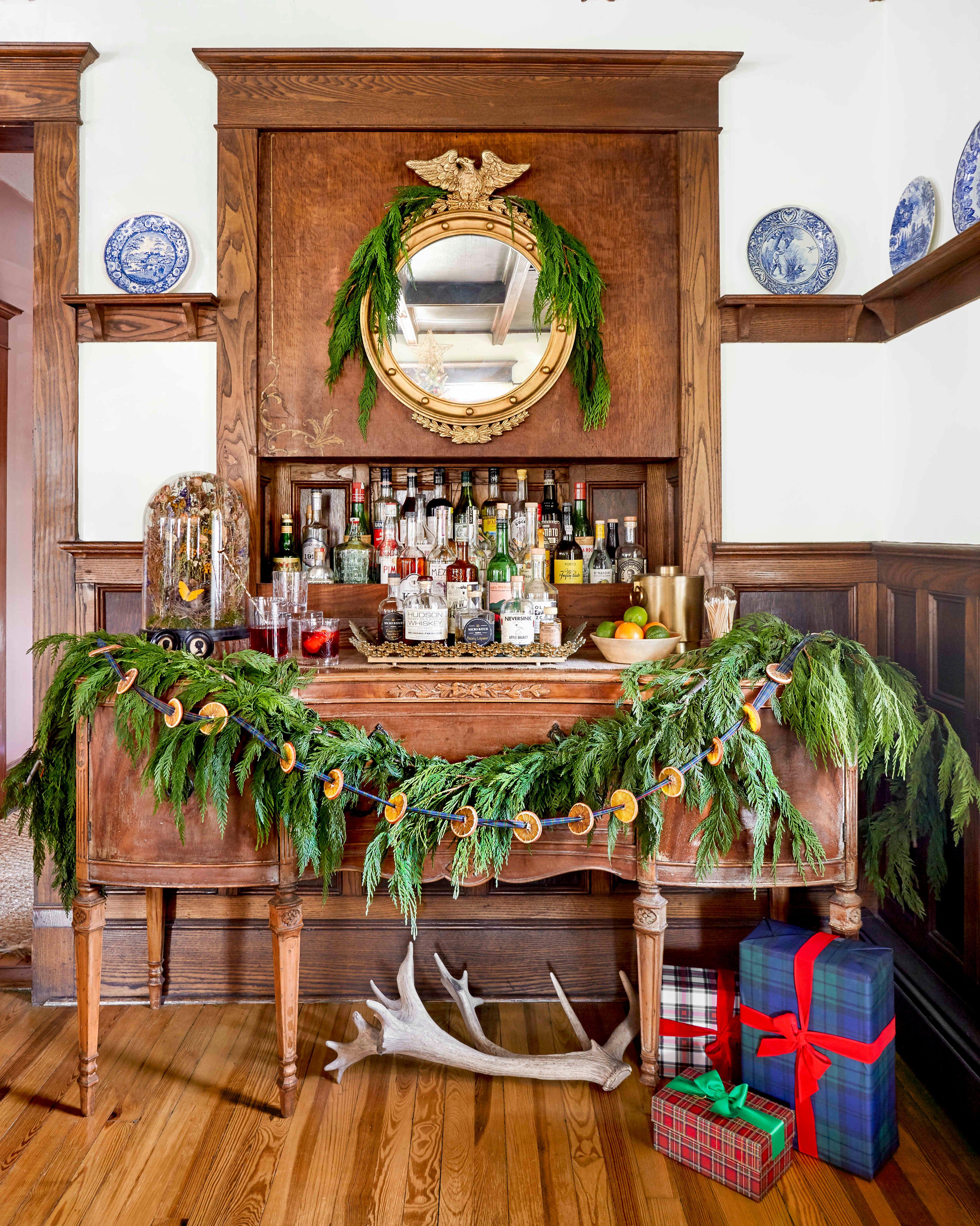 Полка, дверной косяк или подоконник буквально предназначены для праздничных гирлянд! Сделайте их из лент, тонкой мишуры, металла, бумаги, сушеных долек апельсина — вообще из чего угодно, что вам нравится. Новый год — время веселиться!