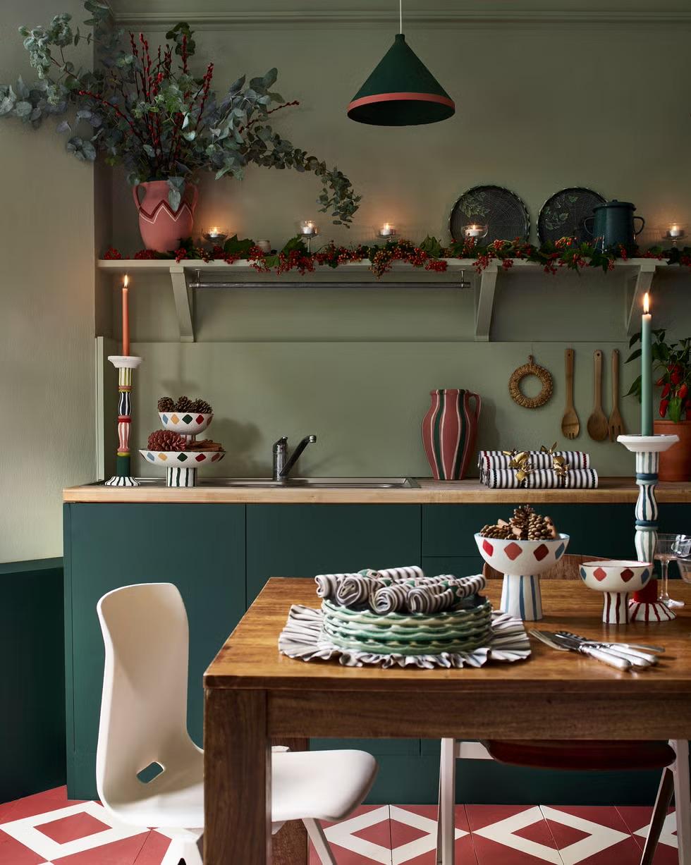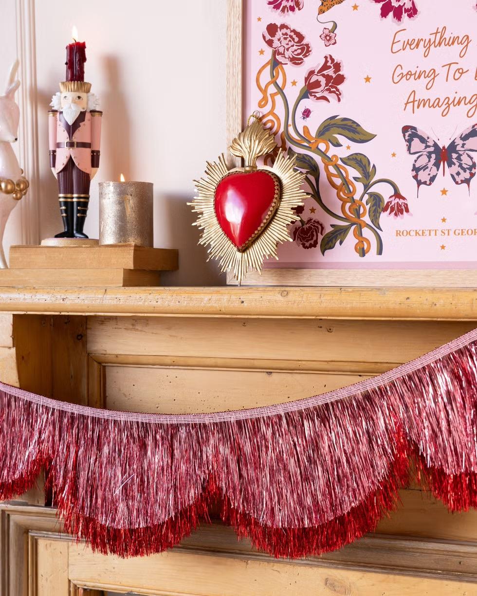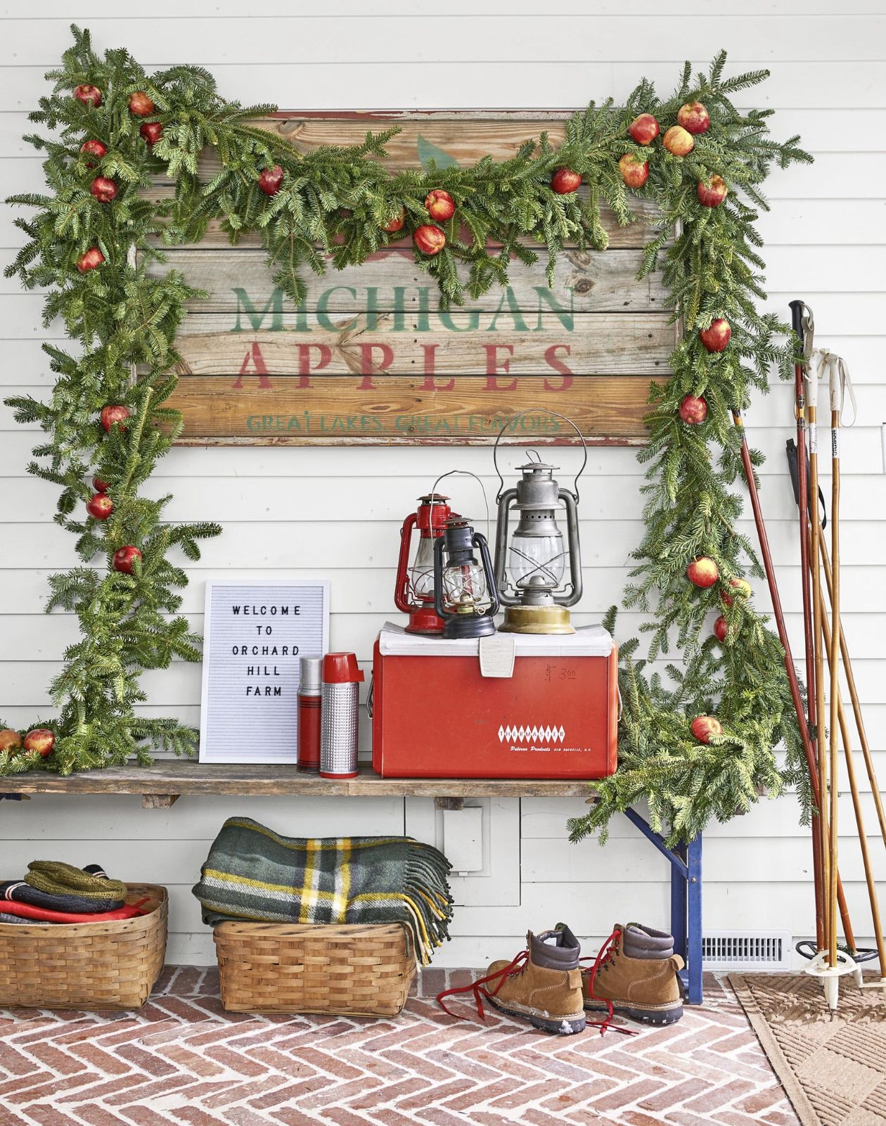 Полка, дверной косяк или подоконник буквально предназначены для праздничных гирлянд! Сделайте их из лент, тонкой мишуры, металла, бумаги, сушеных долек апельсина — вообще из чего угодно, что вам нравится. Новый год — время веселиться!