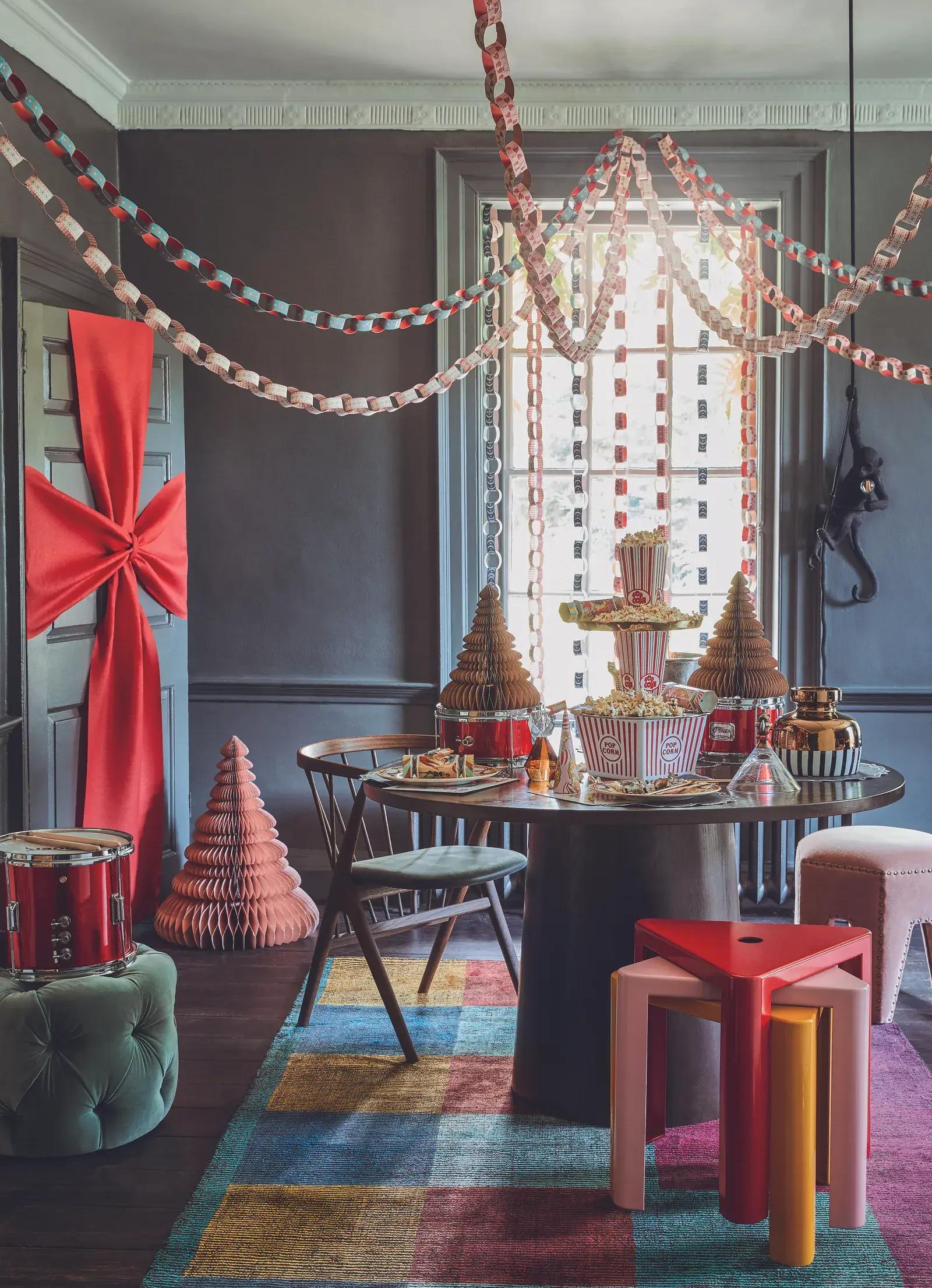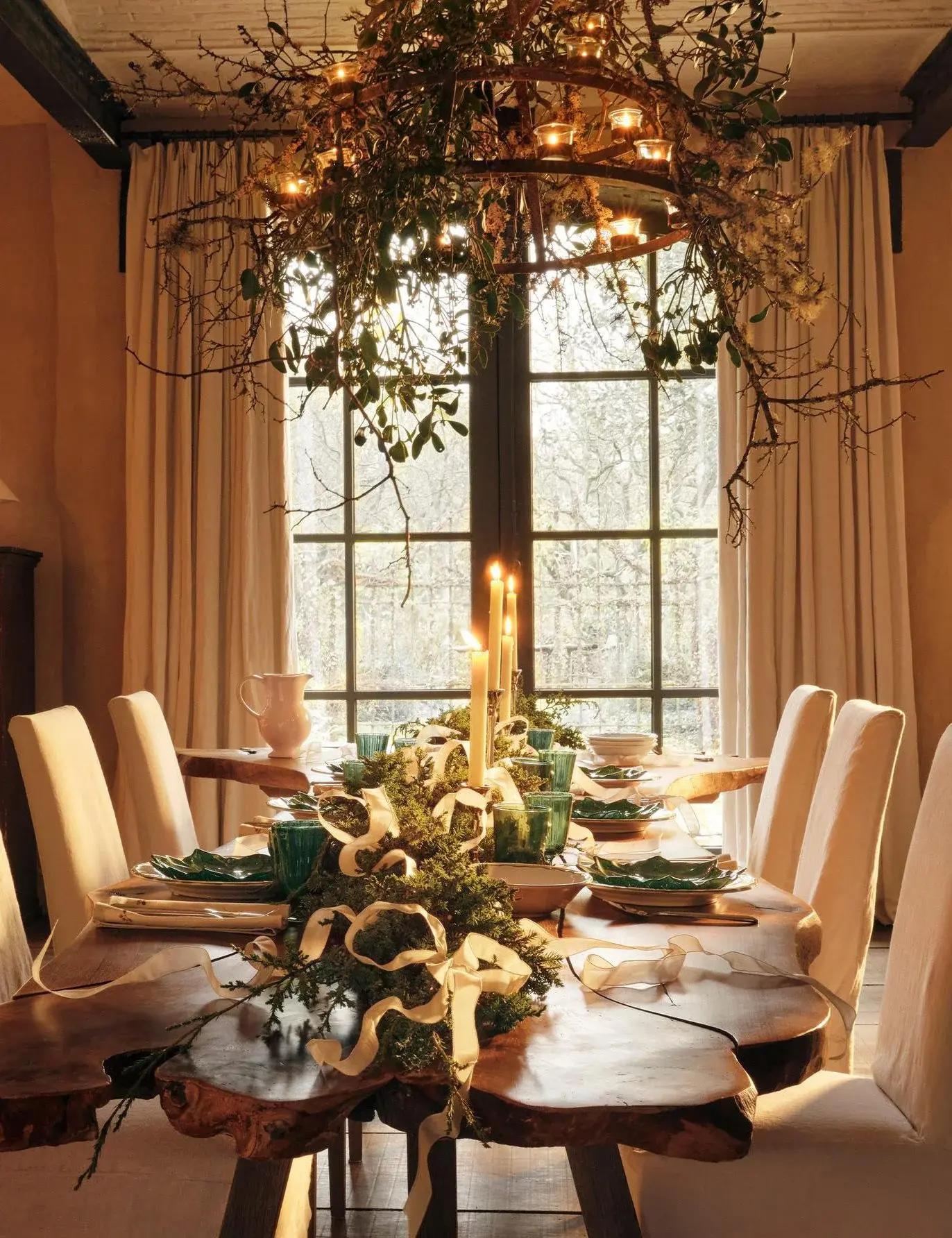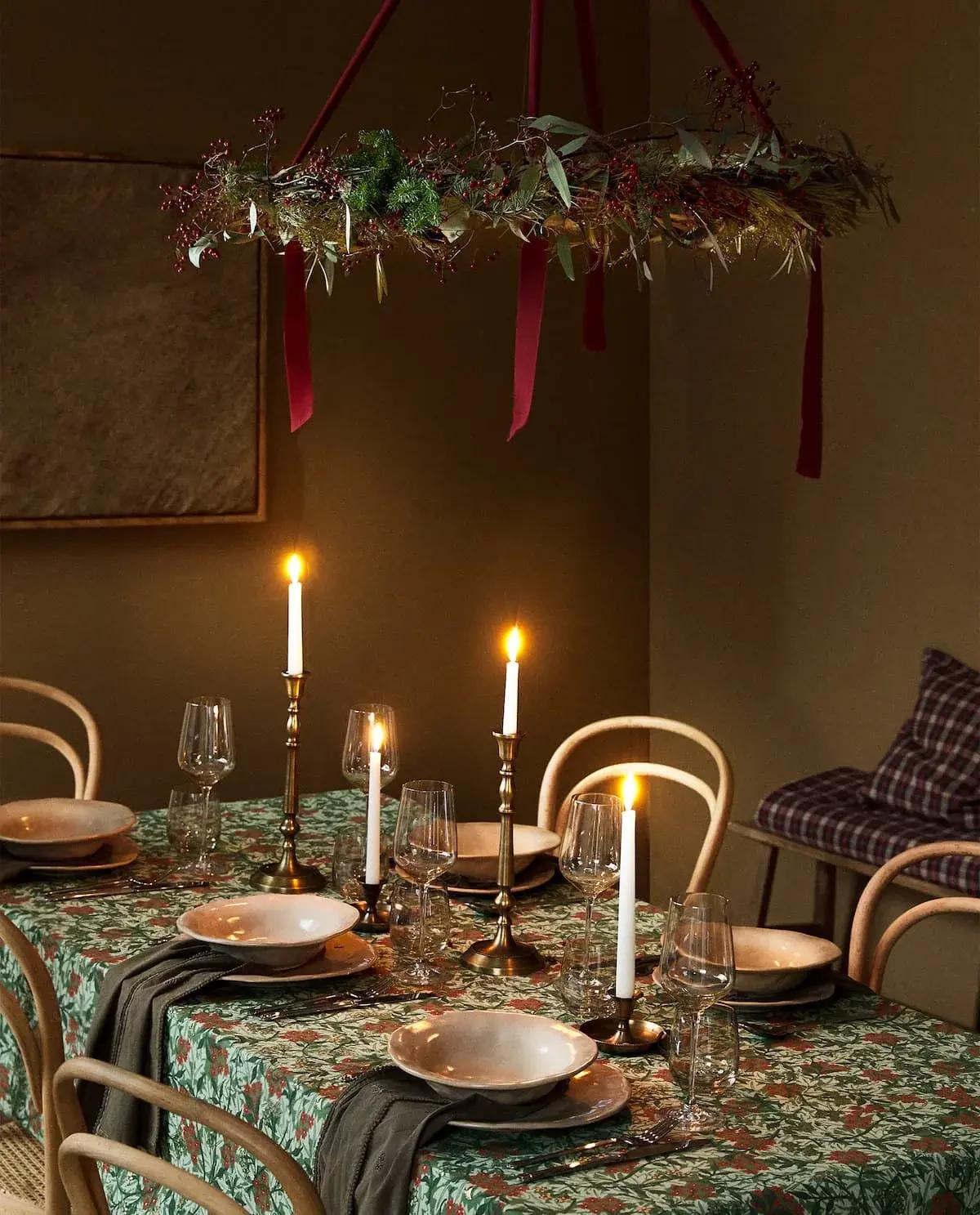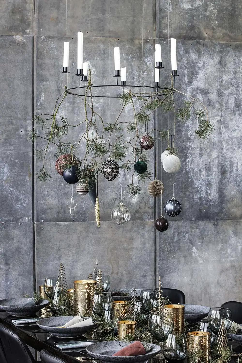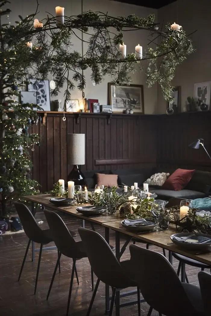 Несколько отрезков мишуры или бумажных снежинок, развешенных на расстоянии друг от друга, не создадут того самого «вау»-эффекта. Нужно сосредоточить украшения в одном месте. Идеально подойдет зона над обеденным столом, если это не будет мешать освещению.